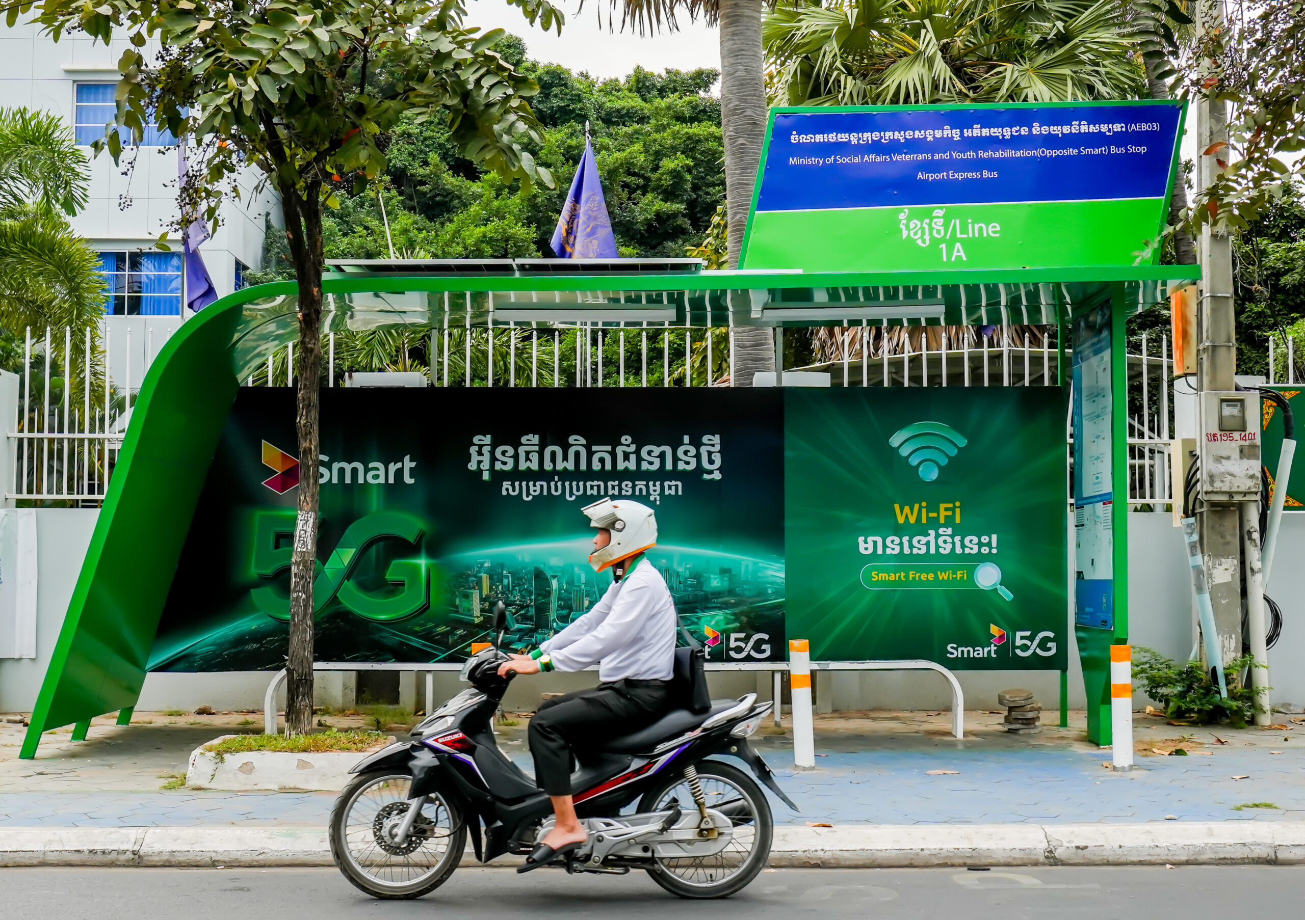 គំនិតផ្តួចផ្តើមដែលមិនធ្លាប់មានពីមុនមកនេះបានជួយផ្សារភ្ជាប់គម្លាតឌីជីថលរវាងអាកាសយានដ្ឋាន និងទីក្រុងដោយធានាថាអ្នកដំណើរនៅតែអាចរក្សាការភ្ជាប់ទំនាក់ទំនងបាន នៅពេលឈានជើងចេញពីព្រលានយន្តហោះ។ មិនតែប៉ុណ្ណោះ អ្នកដំណើរដទៃទៀតក៏អាចរីករាយជាមួយនឹងហេដ្ឋារចនាសម្ព័ន្ធនេះផងដែរ ខណៈដែលរថយន្តក្រុងរត់កាត់មហាវិថីព្រះមុនីវង្សដ៏មម៉ាញឹក។