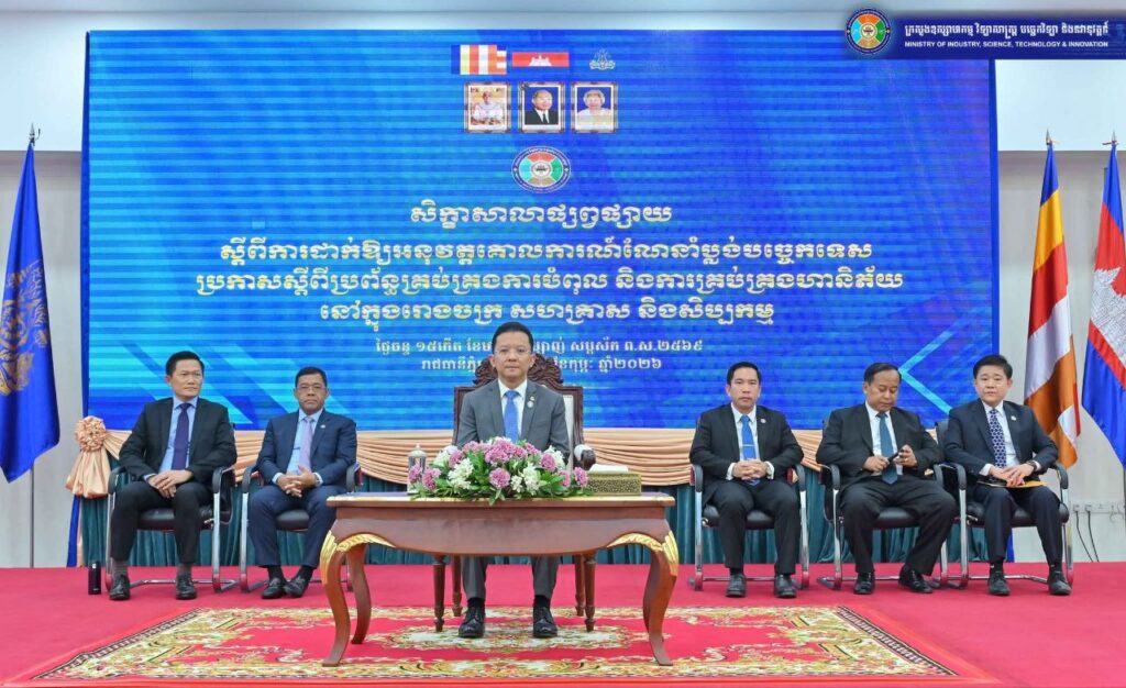 រាជធានីភ្នំពេញ ៖ នៅថ្ងៃទី២ ខែកុម្ភៈ ឆ្នាំ២០២៦ ក្រសួងឧស្សាហកម្ម វិទ្យាសាស្ត្រ បច្ចេកវិទ្យា និងនវានុវត្តន៍ បានរៀបចំសិក្ខាសាលាផ្សព្វផ្សាយស្តីពីការដាក់ឱ្យអនុវត្តគោលការណ៍ណែនាំប្លង់បច្ចេកទេស ប្រកាសស្តីពីប្រព័ន្ធគ្រប់គ្រងការបំពុល និងការគ្រប់គ្រងហានិភ័យនៅក្នុងរោងចក្រ សហគ្រាស និងសិប្បកម្ម ក្នុងគោលដៅពង្រឹងសុវត្ថិភាពឧស្សាហកម្ម។