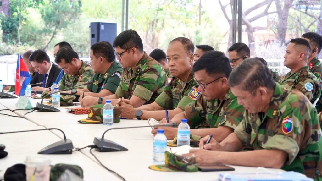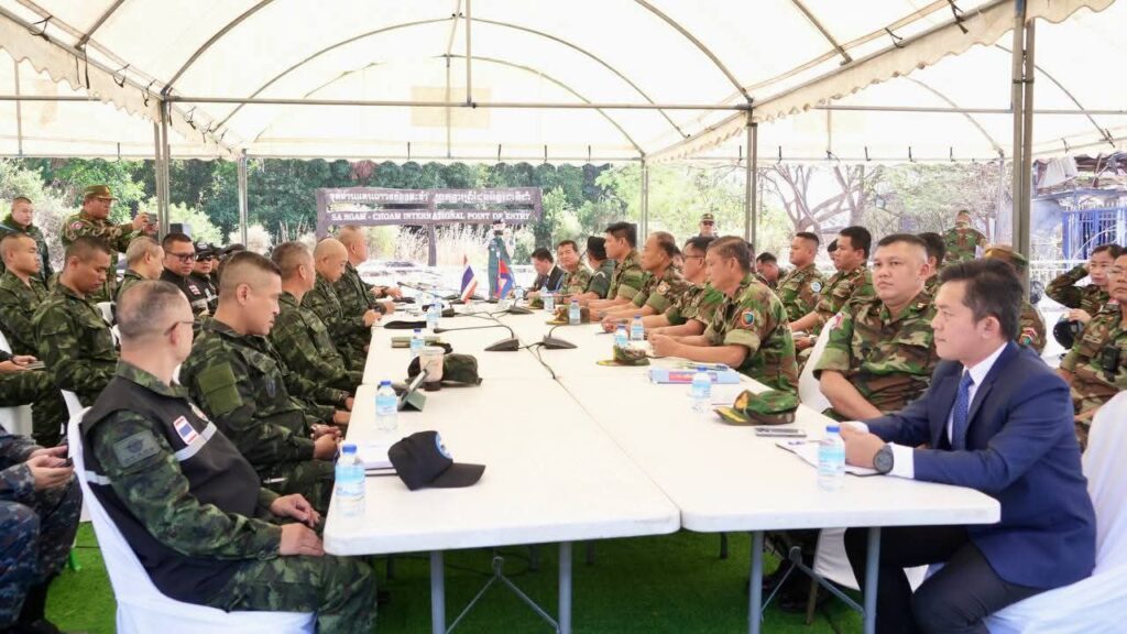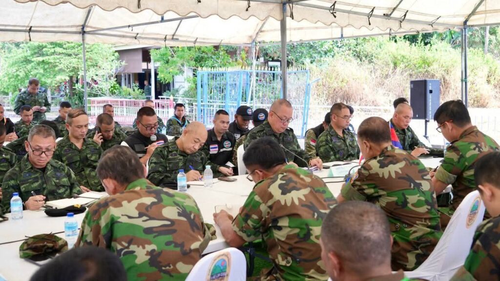 ខេត្តឧត្តរមានជ័យ, ព្រះរាជាណាចក្រកម្ពុជា លោកជំទាវ ឧត្តមសេនីយ៍ឯក ម៉ាលី សុជាតា អ្នកនាំពាក្យក្រសួងការពារជាតិ នៃព្រះរាជាណាចក្រកម្ពុជាបានឲ្យដឹងថា ក្រសួងការពារជាតិ នៃព្រះរាជាណាចក្រកម្ពុជា សូមជម្រាបជូនសាធារណជន អ្នកសារព័ត៌មានជាតិ និងអន្តរជាតិឱ្យបានជ្រាបថា៖ នៅថ្ងៃទី២ ខែកុម្ភៈ ឆ្នាំ២០២៦ វេលាម៉ោង ១១:៥០នាទីព្រឹកនេះ ក្រុមលេខាធិការដ្ឋាននៃគណៈកម្មាធិការព្រំដែនថ្នាក់យោធភូមិភាគកម្ពុជា-ថៃ (RBC) រវាងយោធភូមិភាគទី៤ ភាគីកម្ពុជា និងកងទ័ពភូមិភាគទី២ ភាគីថៃ បានជួបប្រជុំគ្នានៅច្រកអន្តរជាតិជាំ-សាង៉ាំ ស្រុកអន្លង់វែង ខេត្តឧត្តរមានជ័យ ក្រោមការសង្កេតការណ៍ពីក្រុមអ្នកសង្កេតការណ៍អាស៊ាន (AOT) របស់កម្ពុជា និងថៃផងដែរ។ ក្រុមលេខាធិការរបស់កម្ពុជាដឹកនាំដោយ ឧត្តមសេនីយ៍ត្រី និត ណារ៉ុង នាយសេនាធិការរង យោធភូមិភាគទី៤ និងក្រុមលេខាធិការរបស់ថៃដឹកនាំដោយ ឧត្តមសេនីយ៍ត្រី កាំផាក់ណាក វ៉ាផាន់ស៊ុ នាយសេនាធិការ កងទ័ពភូមិភាគទី២។