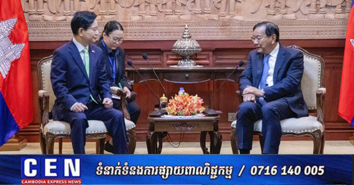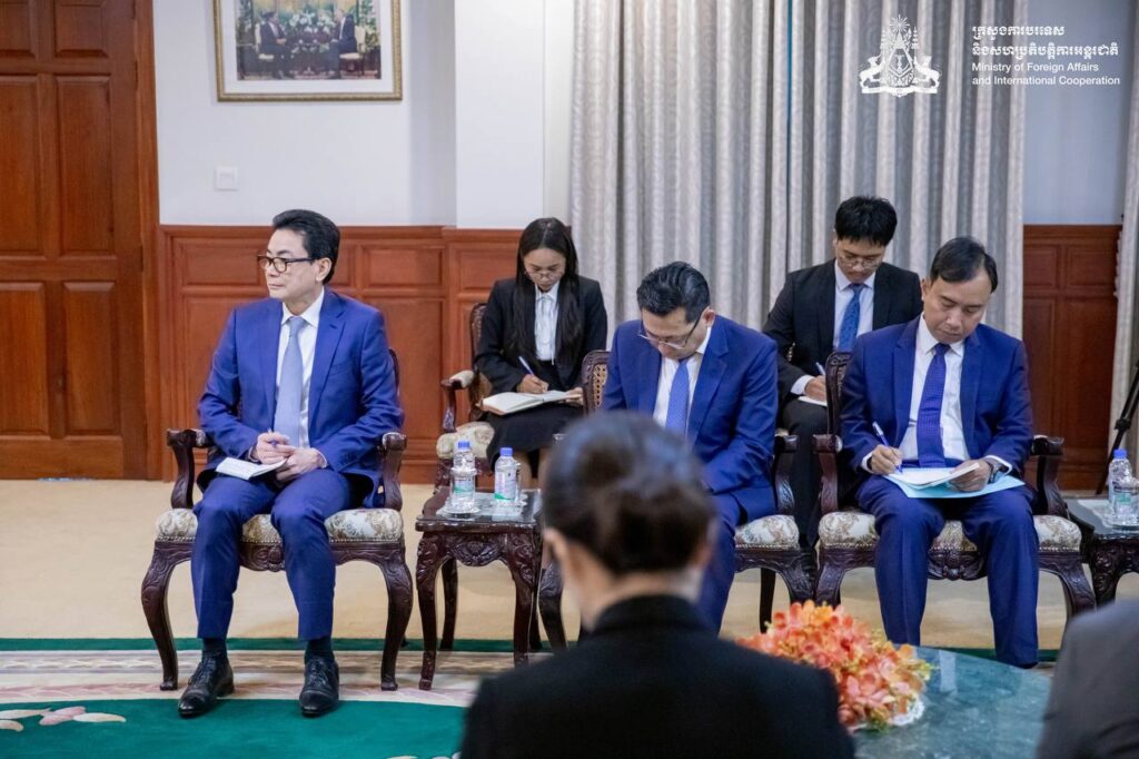 ភ្នំពេញ ៖ នៅព្រឹកថ្ងៃទី០២ ខែកុម្ភៈ ឆ្នាំ២០២៦ នៅទីស្តីការក្រសួង ឯកឧត្តមឧបនាយករដ្ឋមន្ត្រី ប្រាក់ សុខុន រដ្ឋមន្ត្រីការបរទេស និងសហប្រតិបត្តិការអន្តរជាតិ បានអនុញ្ញាតឱ្យឯកឧត្តម គីម ឆាងយ៉ុង (KIM Changyong) ឯកអគ្គរដ្ឋទូតវិសាមញ្ញ និងពេញសមត្ថភាពនៃសាធារណរដ្ឋកូរ៉េ (សា.កូរ៉េ) ប្រចាំព្រះរាជាណាចក្រកម្ពុជា ចូលជួបសម្តែងការគួរសម។