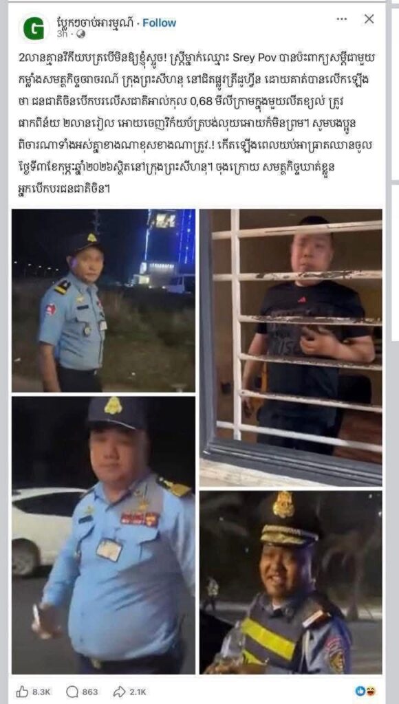 ខេត្តព្រះសីហនុ៖កម្លាំងការិយាល័យនគរបាលចរាចរណ៍ផ្លូវគោក នៃស្នងការដ្ឋាននគរបាលខេត្តព្រះសីហនុ ច្រានចោល គណនី “ប្លែកៗចាប់អារម្មណ៍” ដែលផ្សាយរឿង 2លានគ្មានវិក័យបត្របើមិនឱ្យខ្ញុំស្ទូច។