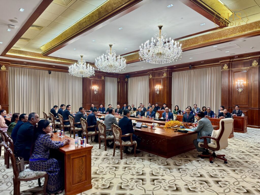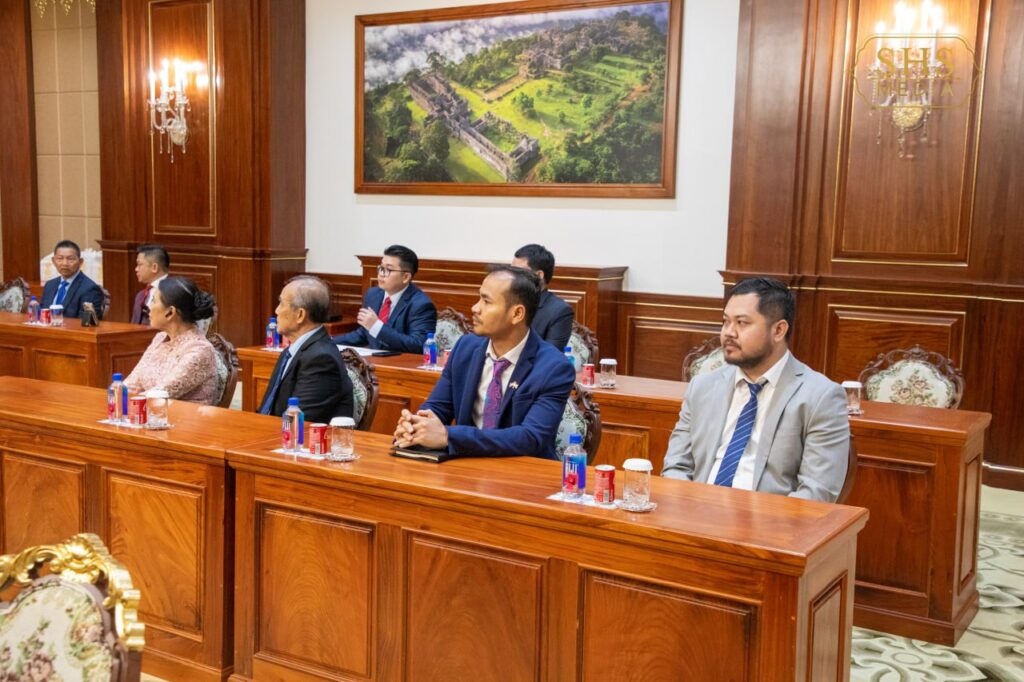 ភ្នំពេញ ៖ សម្តេចអគ្គមហាសេនាបតីតេជោ ហ៊ុន សែន ប្រធានព្រឹទ្ធសភានៃព្រះរាជាណាចក្រកម្ពុជា និងជាប្រធានគណបក្សប្រជាជនកម្ពុជា អនុញ្ញាតឱ្យ ប្រជាពលរដ្ឋខ្មែរ ដែលជាយុវជនគណបក្សប្រជាជនកម្ពុជានៅក្នុងរដ្ឋនានា នៅតំបន់ឆ្នេរខាងលិចនៃសហរដ្ឋអាមេរិក ចូលជួបសម្តែងការគួរសម នៅវិមានសាមគ្គីភាពនៃព្រឹទ្ធសភាជាតិកម្ពុជា រាជធានីភ្នំពេញ នាថ្ងៃពុធ ២រោច ខែមាឃ ឆ្នាំម្សាញ់ សប្តស័ក ពុទ្ធសករាជ ២៥៦៩ ត្រូវនឹងថ្ងៃទី៤ ខែកុម្ភៈ ឆ្នាំ២០២៦ ៕ រក្សាសិទ្ធដោយ៖សុទ្ធលី