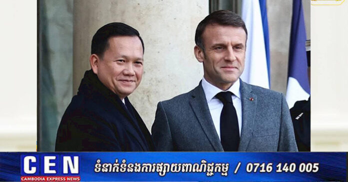 ភ្នំពេញ: សម្តេចមហាបវរធិបតី ហ៊ុន ម៉ាណែត នាយករដ្ឋមន្ត្រីនៃព្រះរាជាណាចក្រកម្ពុជា បានផ្ញើលិខិតមួយច្បាប់ជូនឯកឧត្តម អេម៉ានុយអែល ម៉ាក្រុង ប្រធានាធិបតីនៃសាធារណរដ្ឋបារាំង ដើម្បីឆ្លើយតបទៅនឹងការបង្ហាញឆន្ទៈរបស់ប្រទេសបារាំង ក្នុងការត្រៀមខ្លួនផ្តល់នូវឯកសារប្រវត្តិសាស្ត្រ និងបច្ចេកទេសពាក់ព័ន្ធនឹងព្រំដែនអន្តរជាតិរវាងប្រទេសកម្ពុជា និងប្រទេសថៃ។