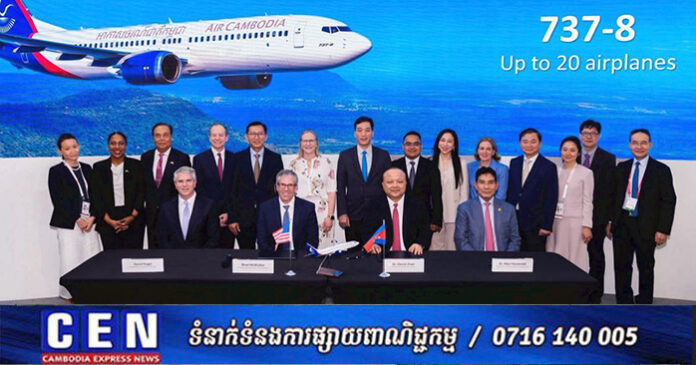 ភ្នំពេញ ៖ ស្ថានទូតសហរដ្ឋអាមេរិកប្រចាំកម្ពុជា នៅព្រឹកថ្ងៃទី៥ ខែកុម្ភៈ ឆ្នាំ២០២៦ បានចេញផ្សាយព័ត៌មានឲ្យដឹងថា កាលពីថ្ងៃទី ៣ ខែកុម្ភៈ លោកស្រីភារធារី Walker បានចូលរួមជាមួយលោកAnjani Sinha ឯកអគ្គរដ្ឋទូតសហរដ្ឋអាមេរិកប្រចាំប្រទេសសិង្ហបុរី លោក David Fogelឧបការរដ្ឋមន្ត្រីក្រសួងពាណិជ្ជកម្មសហរដ្ឋអាមេរិក និងលោក ម៉ៅ ហាវណ្ណាល់ រដ្ឋមន្រ្តីទទួលបន្ទុករដ្ឋលេខាធិការអាកាសចរស៊ីវិលកម្ពុជា នៅពិព័រណ៍អាកាសយានសិង្ហបុរី ដើម្បីធ្វើជាសាក្សីក្នុងពិធីចុះហត្ថលេខាជាផ្លូវការរវាងក្រុមហ៊ុន Boeing និងក្រុមហ៊ុន Air Cambodia សម្រាប់ការទិញយន្តហោះ ៧៣៧ MAX ចំនួន១០ គ្រឿង និងមានសិទ្ធិជ្រើសរើសទិញថែម១០ គ្រឿងទៀត។