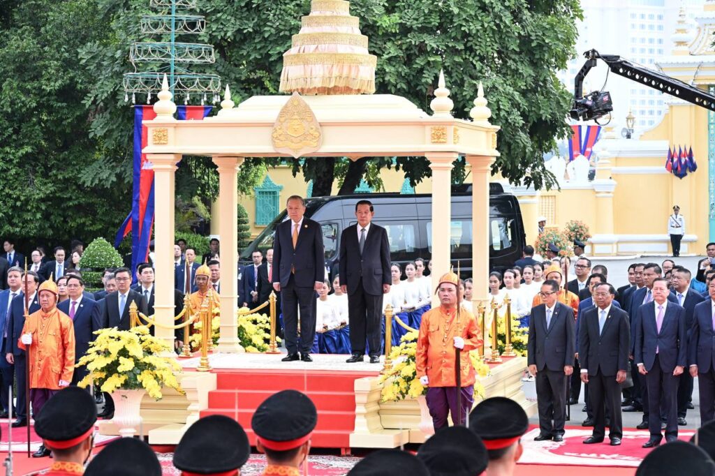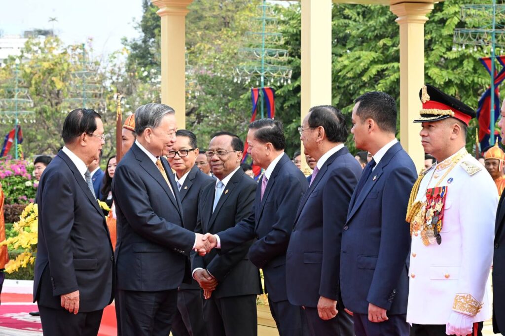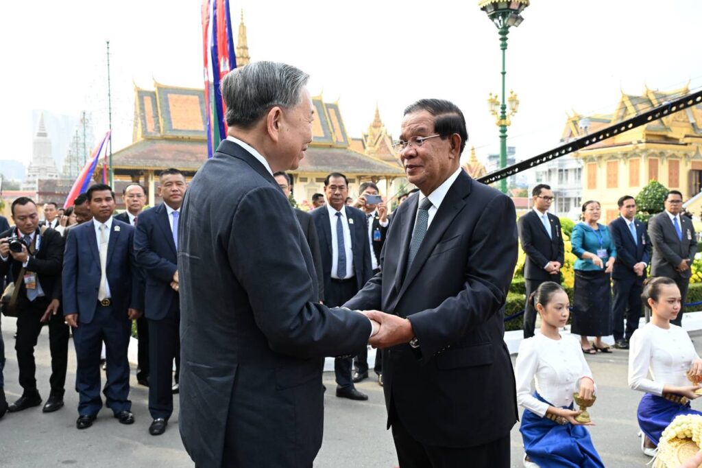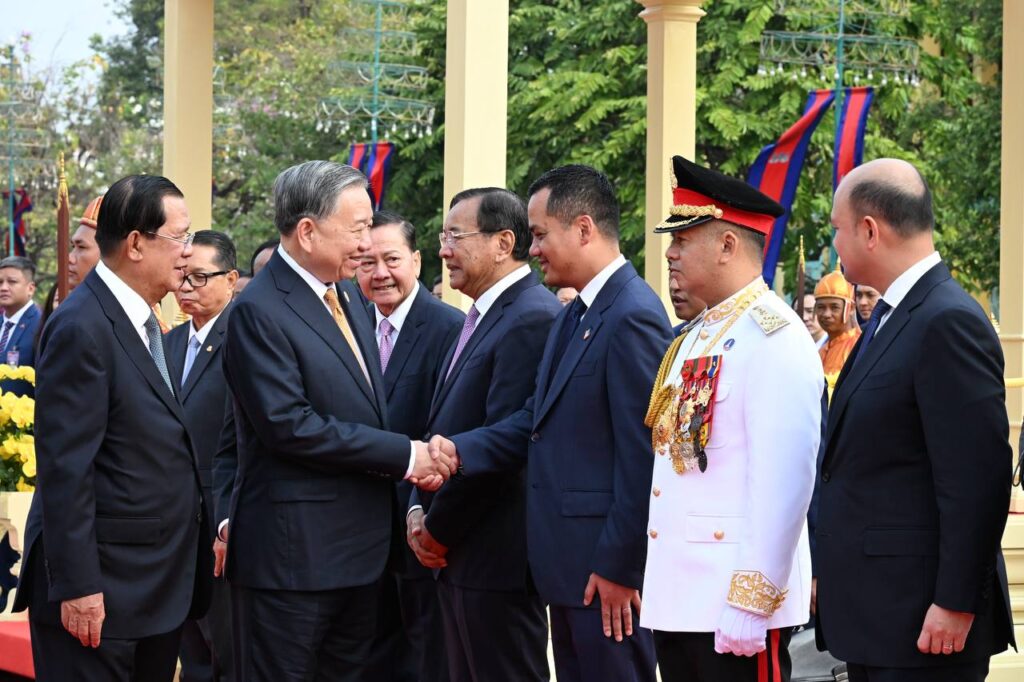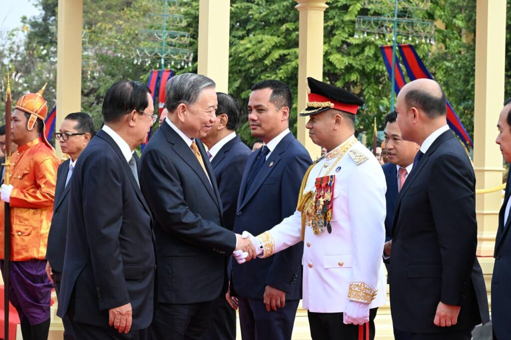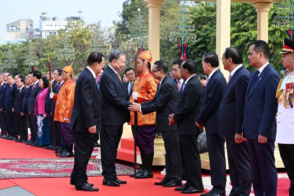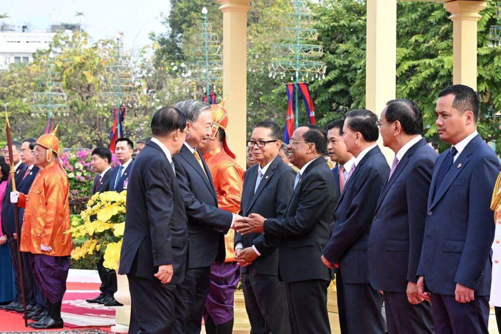 ភ្នំពេញ ៖ នៅព្រះបរមរាជវាំង នាព្រឹកថ្ងៃសុក្រ ៤រោច ខែមាឃ ឆ្នាំម្សាញ់ សប្តស័ក ពុទ្ធសករាជ ២៥៦៩ ត្រូវនឹងថ្ងៃទី៦ ខែកុម្ភៈ ឆ្នាំ២០២៦នេះ សម្ដេចអគ្គមហាសេនាបតីតេជោ ហ៊ុន សែន ប្រធានព្រឹទ្ធសភានៃព្រះរាជាណាចក្រកម្ពុជា បានអញ្ជើញជាព្រះរាជតំណាងដ៏ខ្ពង់ខ្ពស់បំផុត របស់ព្រះករុណាព្រះបាទសម្ដេចព្រះបរមនាថ នរោត្តម សីហមុនី ព្រះមហាក្សត្រនៃព្រះរាជាណាចក្រកម្ពុជា ទទួលបដិសណ្ឋារកិច្ចស្វាគមន៍ផ្លូវរដ្ឋជូន ឯកឧត្តម តូ ឡឹម អគ្គលេខាធិការបក្សកុម្មុយនីស្តវៀតណាម ជាមួយនឹងជំនួបសវនាការផងដែរ ក្នុងឱកាសដែល ឯកឧត្តម អញ្ជើញបំពេញទស្សនកិច្ចផ្លូវរដ្ឋនៅកម្ពុជា។