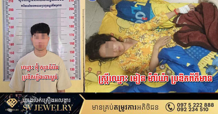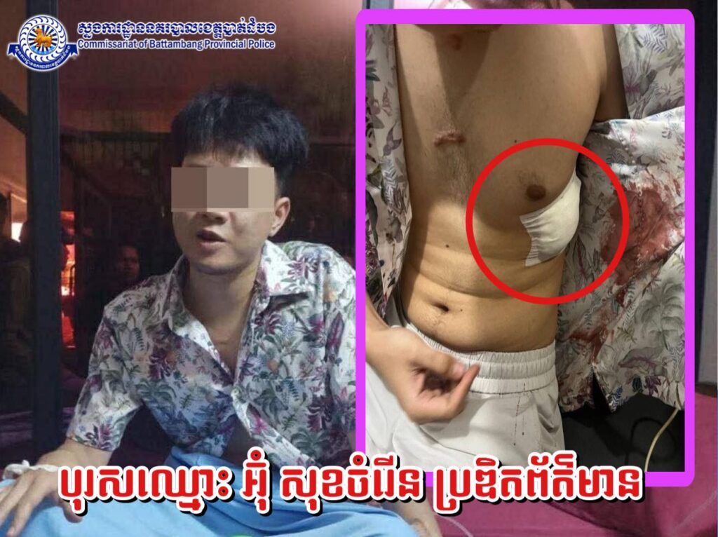 ឈ្មោះ អ៊ុំ សុខចំរើន ភេទប្រុស អាយុ៣០ឆ្នាំ រស់នៅភូមិព្រែក ព្រះស្តេច សង្កាត់ព្រែកព្រះស្តេចក្រុង បាត់ដំបង មានមុខរបរជាងស្លររំលាយមាសបានអះអាងថាខ្លួនត្រូវជនសង័្សយ ប្រើកាំបិតចាក់ខ្លួនប្លន់យកមាសដុំអស់ចំនួន ៥៥ដំឡឹង(ហាសិបប្រាំដំឡឹង)។