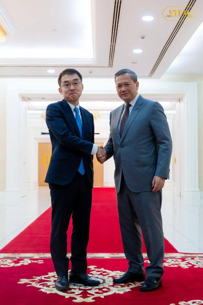 ភ្នំពេញ ៖ សម្តេចមហាបវរធិបតី ហ៊ុន ម៉ាណែត នាយករដ្ឋមន្ត្រីនៃកម្ពុជា អនុញ្ញាតឱ្យ លោក Tetsuya Watanabe ប្រធានវិទ្យាស្ថានស្រាវជ្រាវសេដ្ឋកិច្ចអាស៊ាន និងអាស៊ីបូព៌ា (Economic Research Institute for ASEAN and East Asia-ERIA) ចូលជួបសម្តែងការគួរសម និងពិភាក្សាការងារ នៅវិមានសន្តិភាព នៅព្រឹកថ្ងៃចន្ទ ទី៩ កុម្ភៈ ២០២៦៕ រក្សាសិទ្ធដោយ៖សុទ្ធលី