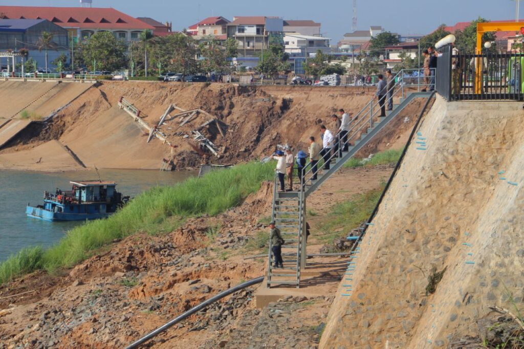 ឯកឧត្តមអ៊ុន ចាន់ដា អភិបាលខេត្តមានប្រសាសន៍ឲ្យដឹងថា: ចំពោះទីតាំងដែលមានសួនច្បាររួមនិងខឿនបេតុងច្រាំងទន្លេដែលបានបាក់នៅក្រោយអតីតសាលាសង្កាត់កំពង់ចាម គឺតាមរយៈក្រុមជំនាញបច្ចេកទេសរបស់ក្រសួងធនធានទឹក ពិនិត្យឃើញថាកន្លែងបាក់នេះគឺមានចរន្តទឹកហូរគួចមានអន្លង់ជ្រៅទើបជាហេតុបណ្ដាលឲ្យបាក់នាកណ្ដាលអាធ្រាតកន្លងទៅថ្មីៗ ។ក្រោយពីទទួលបានព័ត៌មាននេះភ្លាមរូបលោកក៏បានប្រញាប់ចុះពិនិត្យរួមជាមួយមន្ត្រីជំនាញធនធានទឹកដើម្បីមានវិធានការអន្តរាគមន៍ស្ថាបនាជាបន្ទាន់។