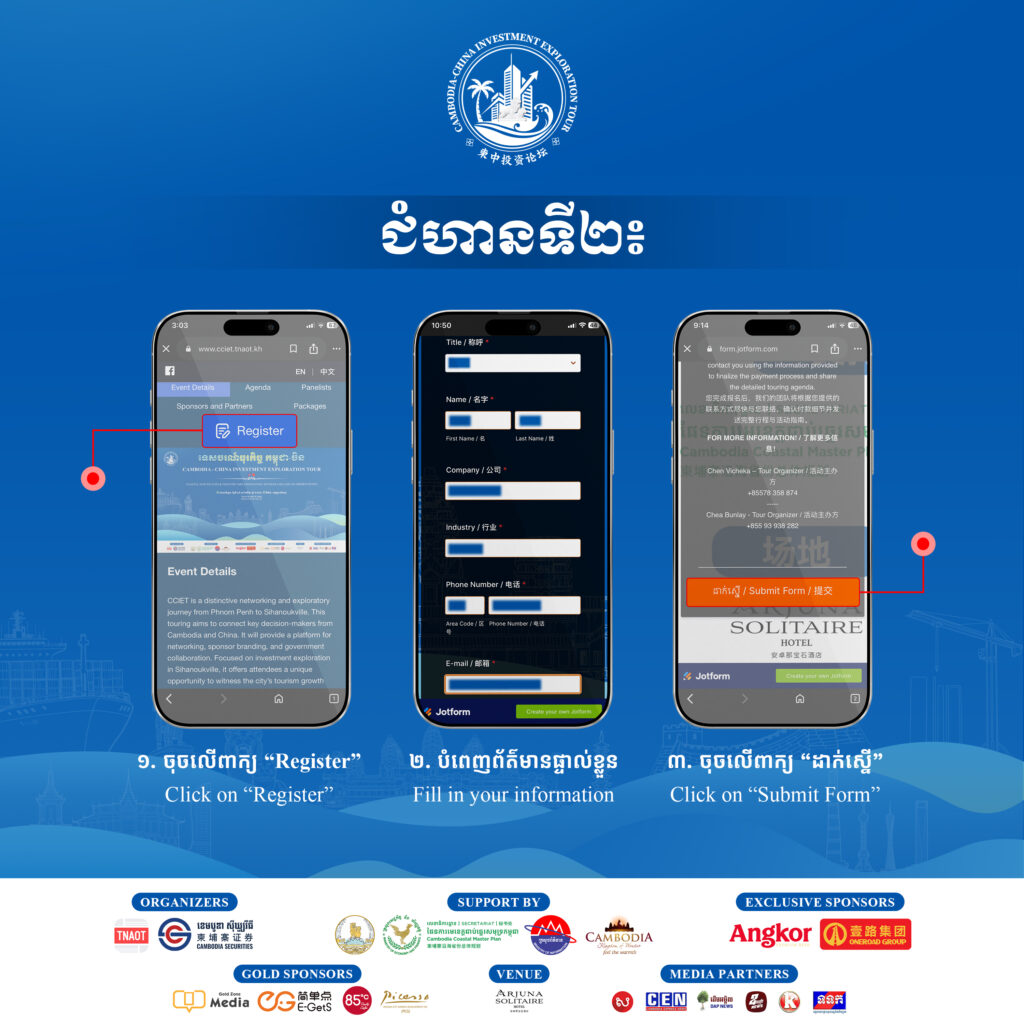 របៀបចុះឈ្មោះចូលរួមក្នុងព្រឹត្តិការណ៍ “ទេសចរណ៍ធុរកិច្ច កម្ពុជា-ចិន” នៅថ្ងៃទី១៨-១៩ ខែមីនា ឆ្នាំ២០២៦ ក្នុងក្រុងព្រះសីហនុ