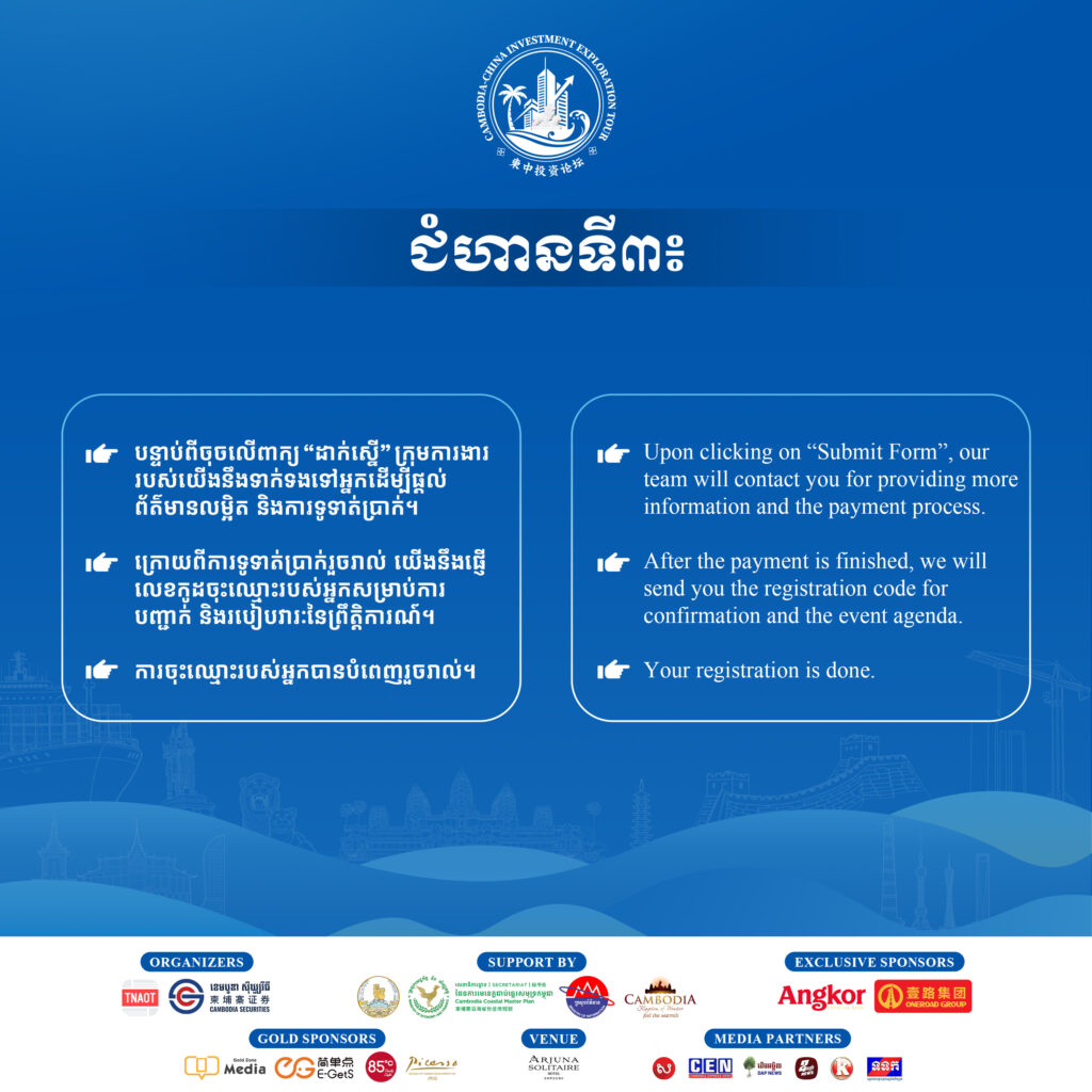 សម្រាប់អស់លោកអ្នកដែលជាវិនិយោគិន ឬម្ចាស់សហគ្រាសដែលមានចំណាប់អារម្មណ៍ សូមធ្វើតាមវិធីណែនាំដូចខាងក្រោម