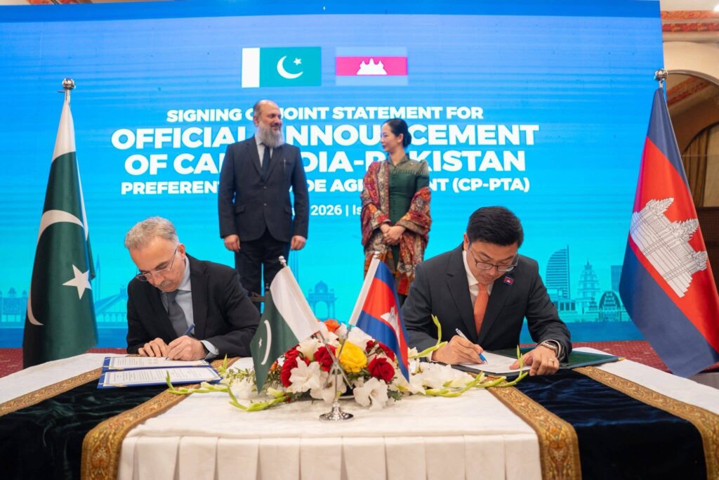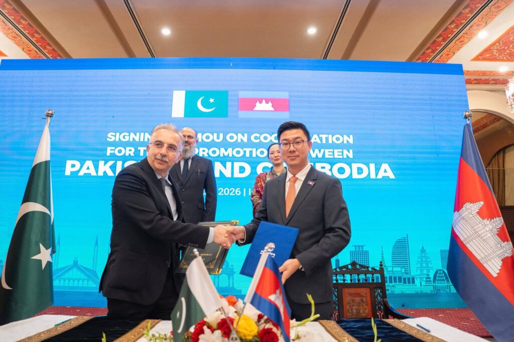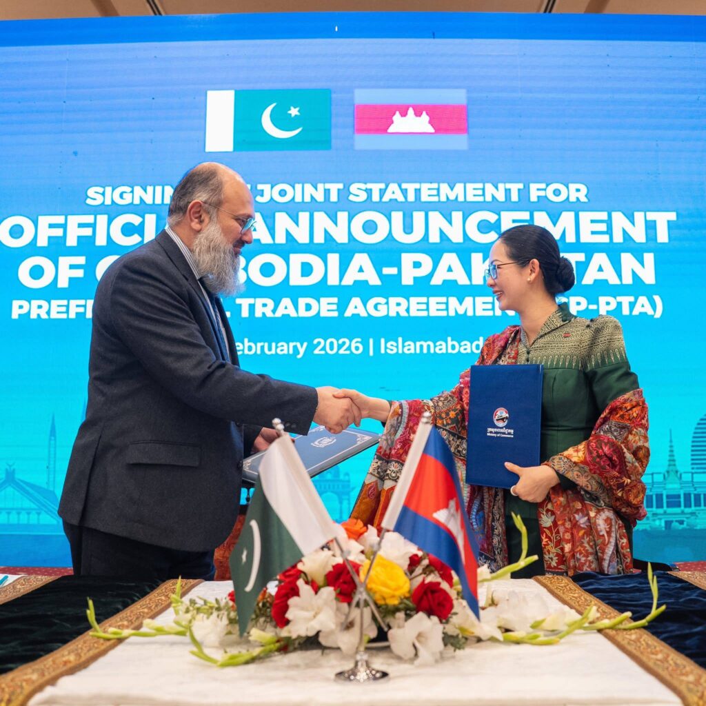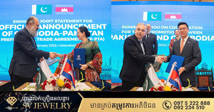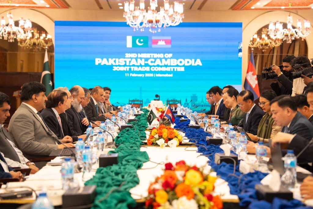 (អ៊ីស្លាម៉ាបាដ, ប៉ាគីស្ថាន)៖ លោកជំទាវ ចម និម្មល រដ្ឋមន្រ្តីក្រសួងពាណិជ្ជកម្ម និងឯកឧត្តម ជែម កាម៉ាល់ ខាន់ នៃសាធារណរដ្ឋឥស្លាមប៉ាគីស្ថាន បានអញ្ជើញជាសហប្រធានដឹកនាំកិច្ចប្រជុំថ្នាក់រដ្ឋមន្រ្តីនៃគណៈកម្មាធិការពាណិជ្ជកម្មចម្រុះកម្ពុជា-ប៉ាគីស្ថាន លើកទី២ ដោយមានការចូលរួមពីក្រសួង-ស្ថាប័នពាក់ព័ន្ធ របស់ប្រទេសទាំងពីរផងដែរ ។ កិច្ចប្រជុំគណៈកម្មាធិការពាណិជ្ជកម្មចម្រុះកម្ពុជា-ប៉ាគីស្ថាន លើកទី២នេះបានធ្វើឡើង នារសៀលថ្ងៃពុធ ទី១១ ខែកុម្ភៈ ឆ្នាំ២០២៦ នៅរដ្ឋធានីអ៊ីស្លាម៉ាបាដ សាធារណរដ្ឋអ៊ីស្លាមប៉ាគីស្ថាន។