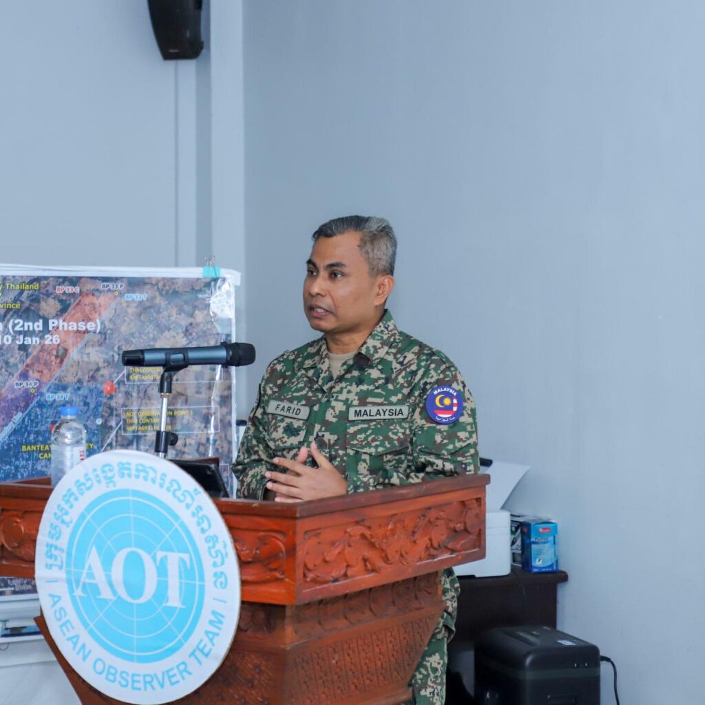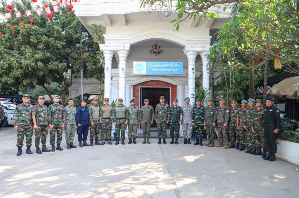 សូមគូសបញ្ជាក់ផងដែរថា កម្ពុជាតែងតែផ្តល់ការគាំទ្រយ៉ាងពេញទំហឹងដល់យន្តការក្រុមអ្នកសង្កេតការណ៍អាស៊ាន (AOT) ព្រមទាំងសង្កត់ធ្ងន់ទៅលើសារៈសំខាន់មិនអាចខ្វះបាន ក្នុងការពង្រឹងតួនាទី និងអាណត្តិរបស់ AOT ដើម្បីផ្ទៀងផ្ទាត់ និងធានាការអនុវត្តបទឈប់បាញ់ឱ្យបានពេញលេញ និងប្រកបដោយប្រសិទ្ធភាព សំដៅលើកកម្ពស់តម្លាភាព គណនេយ្យភាព និងការជឿទុកចិត្តគ្នាទៅវិញទៅមក។