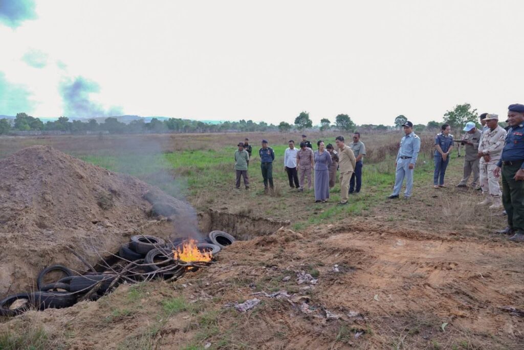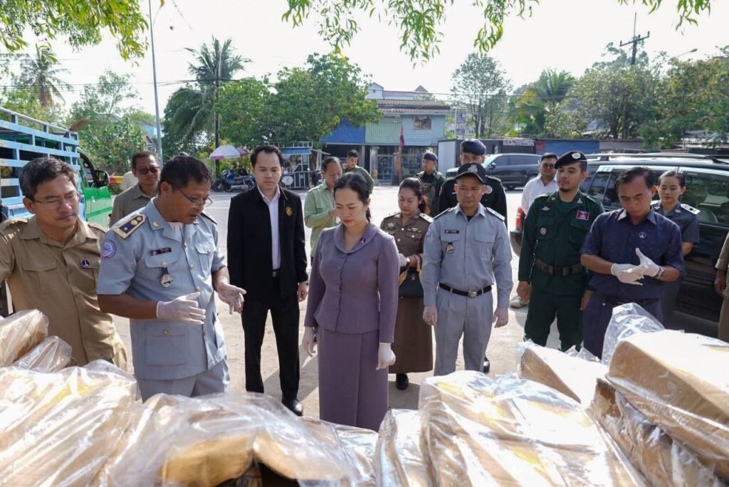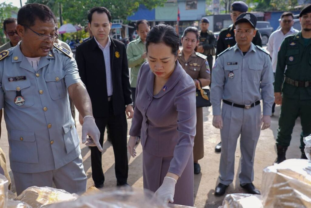 លោកជំទាវ ឈី វ៉ា អភិបាល នៃគណៈអភិបាលខេត្តកោះកុង និងជាប្រធានគណៈបញ្ជាការឯកភាពរដ្ឋបាលខេត្ត នៅថ្ងៃទី១៦ ខែកុម្ភៈ ឆ្នាំ២០២៦ បានអញ្ជើញត្រួតពិនិត្យករណីចាប់ឃាត់បានទូកដឹកទំនិញឆ្លងដែនខុសច្បាប់ពីប្រទេសថៃ ក្នុងទូកដែលចាប់ឃាត់ បានដឹកទំនិញខុសច្បាប់ ដែលទំនិញរួមមាន មឹកបង្កក ធុងទឹកខៀវ និងធុងក្លាសេ។ ជាលទ្ធផលមឹកបង្កកដែលចាប់បានយកទៅដុតកម្ទេចចោល ចំណែកទូក ធុងទឹកខៀវ និងធុងក្លាសេ ប្រគល់ជូនបញ្ជាការដ្ឋានការពារកោះឆ្នេរ (កោះយ៉) យកទៅរក្សាទុកបណ្ដោះអាសន្ន ដើម្បីស៊ើបអង្កេតបន្ត៕ រក្សាសិទ្ធដោយ៖សុទ្ធលី