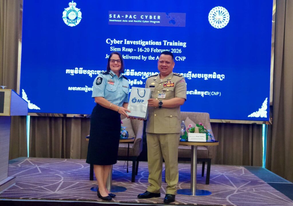 ដើម្បីបង្ក្រាបបទល្មើសឆ្លងដែន និងឧក្រិដ្ឋកម្មឆបោកតាមប្រព័ន្ធបច្ចេកវិទ្យា ឱ្យរឹងរឹតកាន់តែមានប្រសិទ្ធភាព លោកឧត្តមសេនីយ៍ទោ ហួត សុធី ស្នងការនគរបាលខេត្តសៀមរាប និងលោកស្រី រ៉េឆេល បល (Rachel Ball) នាយនគរបាលជាន់ខ្ពស់សហព័ន្ធអូស្រ្តាលីប្រចាំរាជធានីភ្នំពេញ បានអញ្ជើញបើកវគ្គបណ្តុះបណ្តាល ស្តីពីវិធីសាស្រ្តស្រាវជ្រាវបទល្មើសបច្ចេកវិទ្យា និងផ្លាស់ប្ដូរបទពិសោធន៍លើការបង្ក្រាប នាព្រឹកថ្ងៃទី១៦ ខែកុម្ភៈ ឆ្នាំ២០២៦។