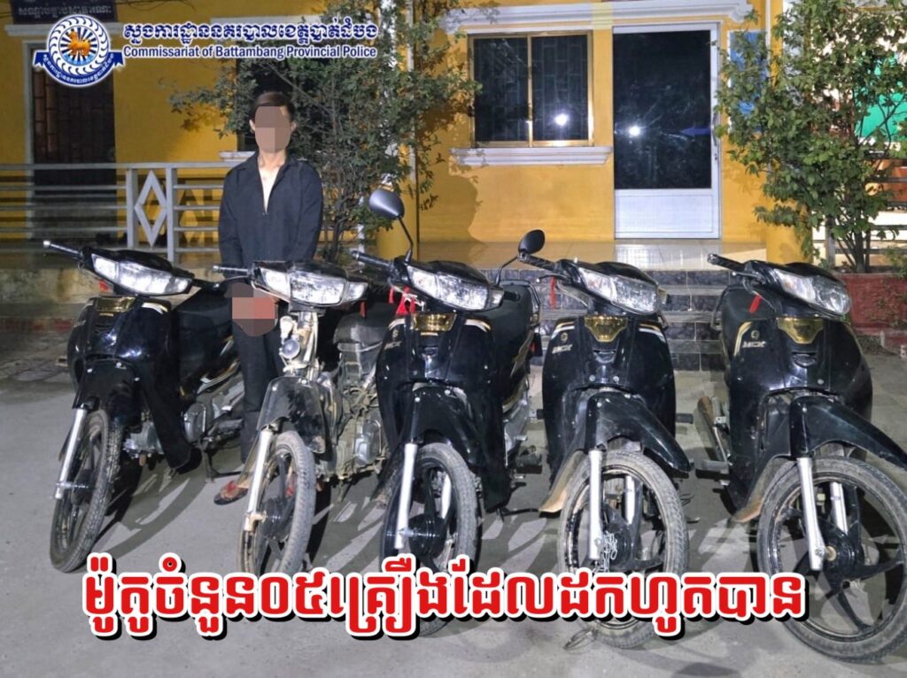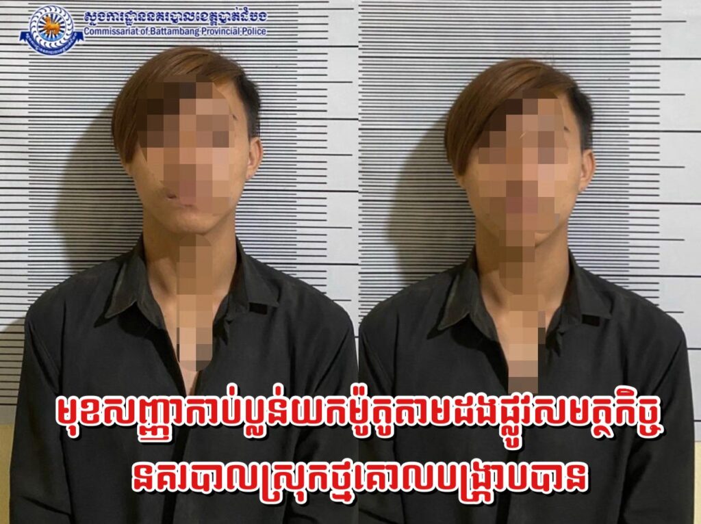 បាត់ដំបង ៖ ពីថ្ងៃទី ១៦ ខែ កុម្ភៈ ឆ្នាំ ២០២៦ តាមអនុសាសន៍ដ៏ខ្ពង់ខ្ពស់របស់ឯកឧត្តម នាយឧត្តមសេនីយ៍ ស ថេត អគ្កស្នងការនគរ បាលជាតិ និងក្រោមបញ្ជដឹកនាំផ្ទាល់ពី លោកឧត្តមសេនីយ៍ទោ ដាញ់ អេងប៊ុន ចាន់ ស្នងការនៃស្នងការដ្ឋាននគរបាលខេត្តបាត់ដំបង ដោយបានការសម្រប សម្រួលលើនីតិវិធី ពីឯកឧត្តម មាស ច័ន្ទពិសិដ្ឋ ព្រះរាជអាជ្ញានៃអយ្យការអម សាលាដំបូងខេត្តបាត់ដំបងផងនោះ សមត្ថកិច្ចនគរបាលស្រុថ្មគោល ដែល មានលោកវរសេនីយ៍ឯកសេង លុច ជាអធិការនគរបាលស្រុក ដឹកនាំបង្រ្កាបមុខសញ្ញាដែលធ្វើសកម្មភាពដេញកាប់ប្លន់យកម៉ូតូតាមដងផ្លូវនិងលួចយ៉ាងសកម្មក្នុងភូមិសាស្រ្តក្រុង ស្រុកពាក់ព័ន្ធ ក្នុងខេត្តបាត់ដំបង ដោយធ្វើការឃាត់ខ្លួនម្នាក់ឈ្មោះ អាន សេងហុក (ហៅរ៉ាត់)ភេទប្រុស អាយុ ១៨ ឆ្នាំរស់នៅភូមិបន្សាយត្រែង ឃុំបន្សាយត្រែង ស្រុកថ្មគោល យកមកធ្វើការសាកសួរ នៅអធិការដ្ឋាននគរបាលស្រុក ហើយភ្លាមៗដកហូតបានម៉ូតូចំនួន ០៣គ្រឿង បន្ទាប់ពីធ្វើសកម្មភាពជាក់ស្តែងលើដងផ្លូវ នៅភូមិគ្រួស ឃុំអន្លង់រុន ស្រុកថ្មគោល។ នេះបើតាមការចេញផ្សាយព័ត៌មានរបស់ស្នងការដ្ឋាននគរបាលខេត្តបាត់ដំបង នៅថ្ងៃទី ១៨ ខែ កុម្ភៈ ឆ្នាំ ២០២៦នេះ។