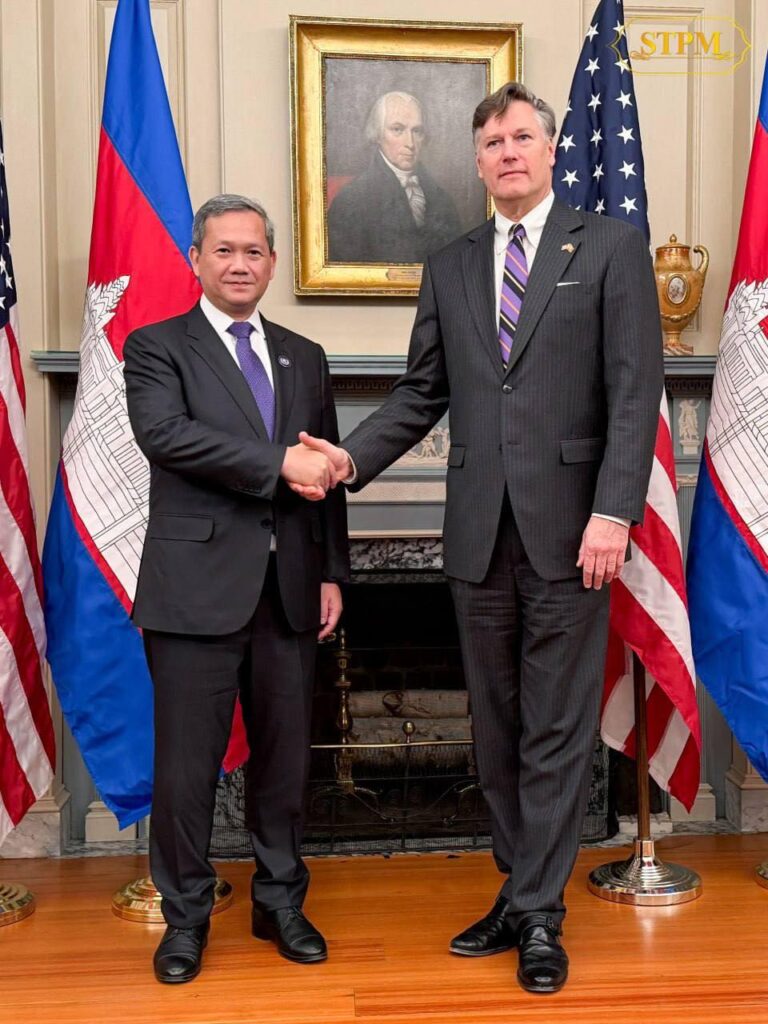 អាមេរិក ៖ សម្តេចមហាបវរធិបតី ហ៊ុន ម៉ាណែត នាយករដ្ឋមន្រ្តីនៃព្រះរាជាណាចក្រកម្ពុជា បានអញ្ជើញជួបជាមួយ ឯកឧត្តម Christopher Landau អនុរដ្ឋមន្ត្រីការបរទេសអាមេរិក ក្នុងជំនួបសម្តែងការគួរសម និងពិភាក្សាការងារ រសៀលថ្ងៃព្រហស្បតិ៍ ទី១៩ កុម្ភៈ ២០២៦នៅសហរដ្ឋអាមេរិក៕ រក្សាសិទ្ធដោយ៖សុទ្ធលី