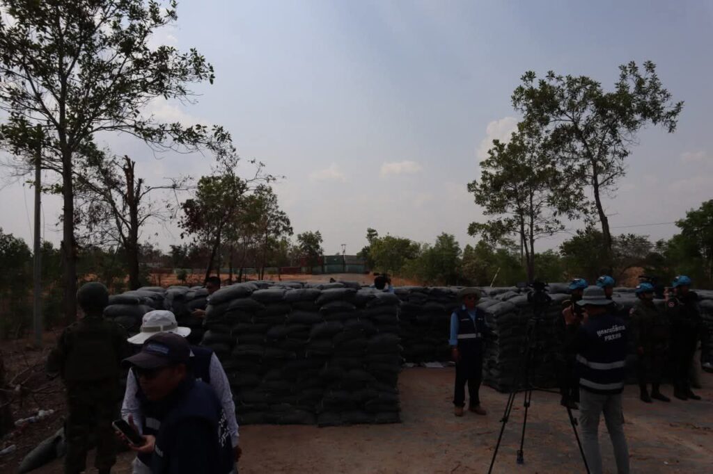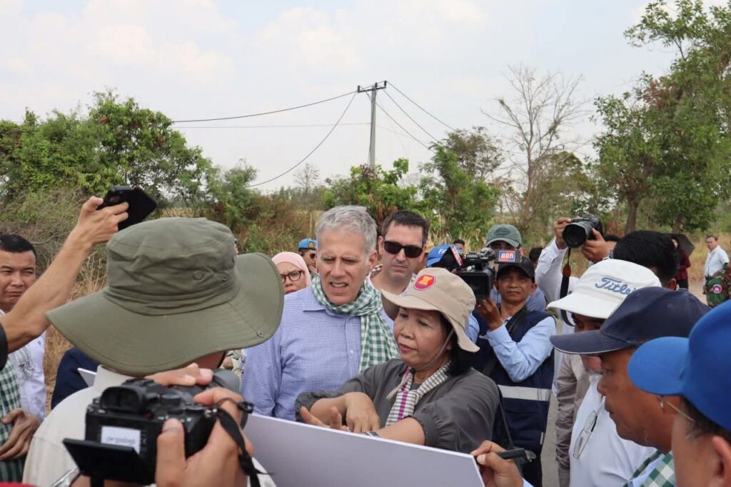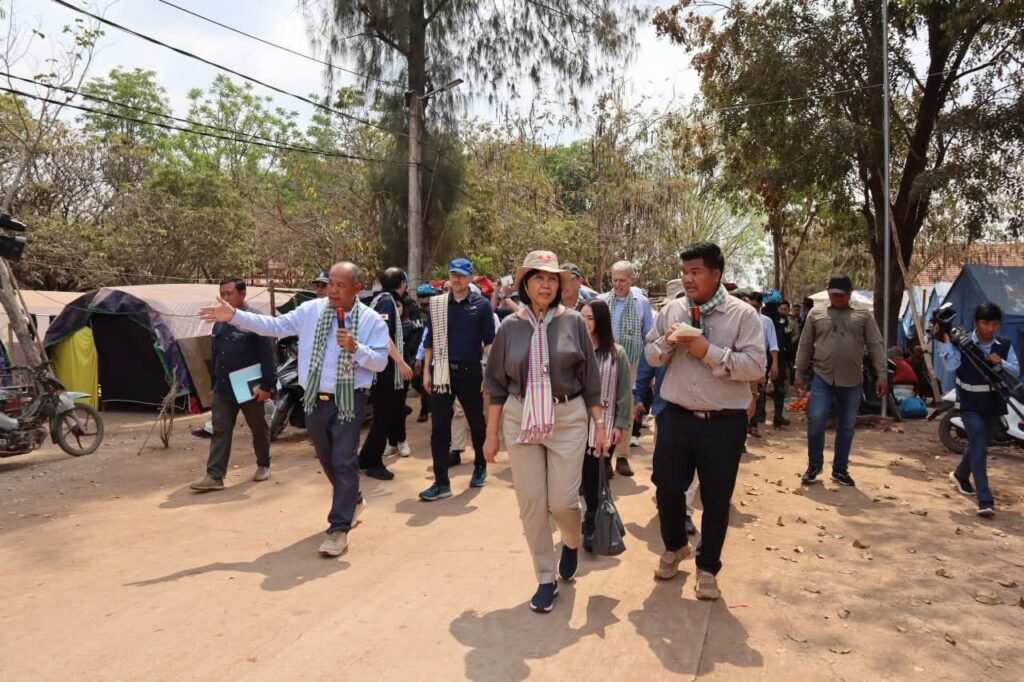 លោកជំទាវ អ៊ាត សោភា រដ្ឋមន្ត្រីស្តីទី ក្រសួងការបរទេស និងសហប្រតិបត្តិការអន្តរជាតិ នៅថ្ងៃទី២៣ ខែកុម្ភ: ឆ្នាំ ២០២៦ បានដឹកនាំអង្គទូតបរទេស និងអង្គការអន្តរប្រចាំកម្ពុជា ចុះពិនិត្យស្ថានភាពជាក់ស្តែងនៅភូមិជោគជ័យ ភូមិព្រៃចាន់ ស្ថិតឃុំអូរបីជាន់ ស្រុកអូរជ្រៅ និងតំបន់បឹងត្រកួន ក្នុងស្រុកថ្មពួក ខេត្តបន្ទាយមានជ័យ ដែលយោធាថៃបន្តសកម្មភាពដាក់ទូកុងតឺន័រ និងរាយបន្លាលួស រួមទាំងលើកទង់ជាតិរបស់ខ្លួនក្នុងទឹកដីកម្ពុជា។
