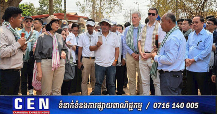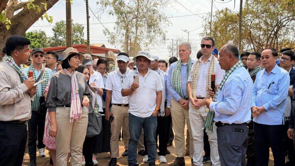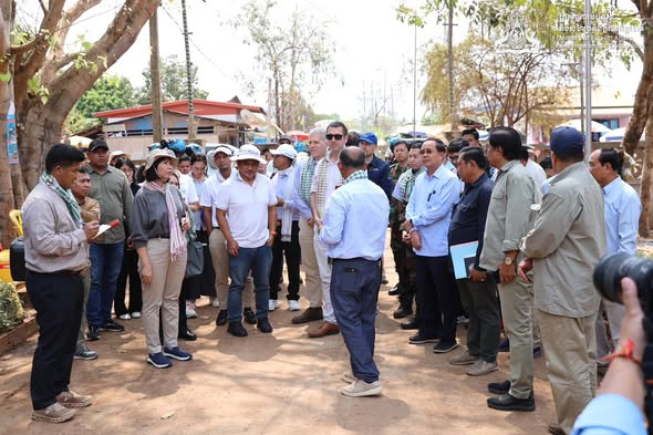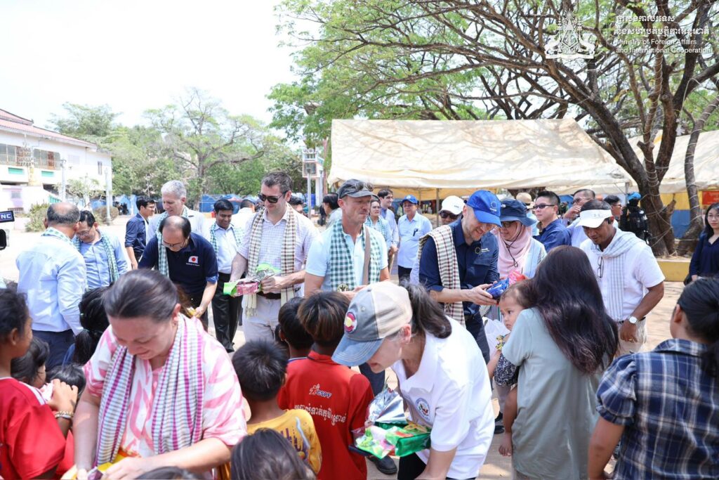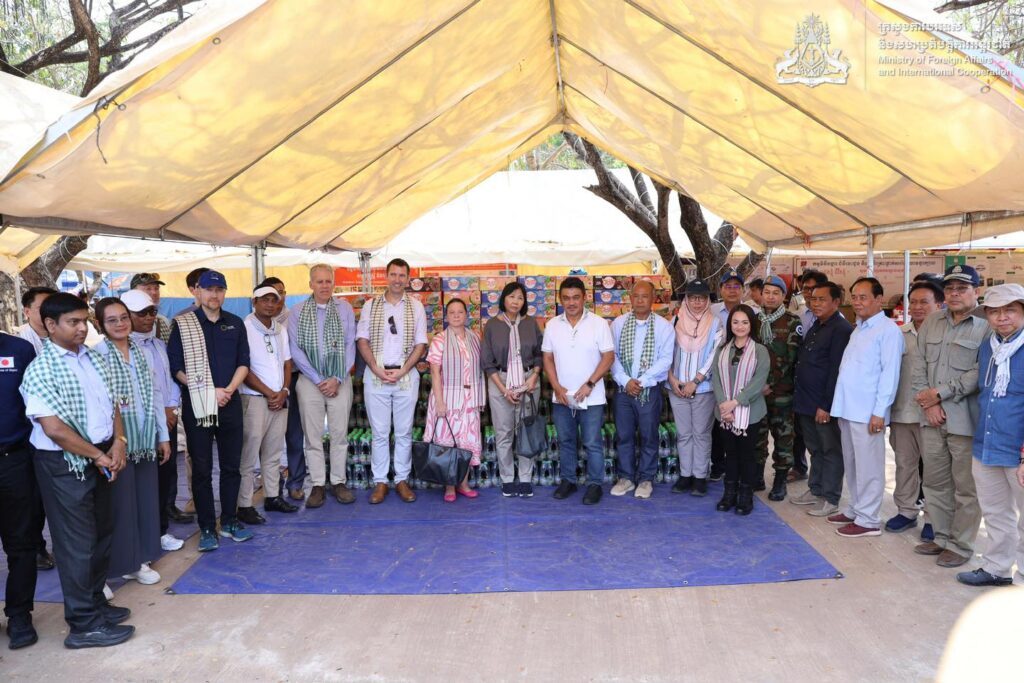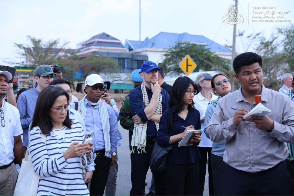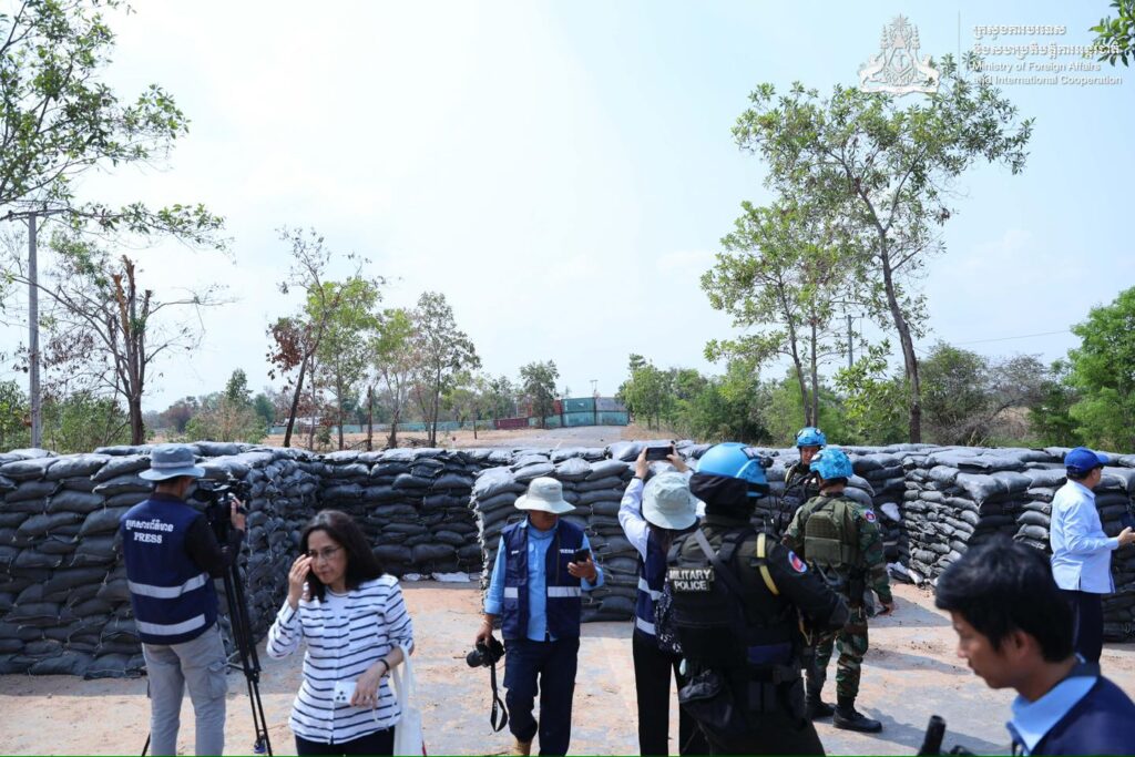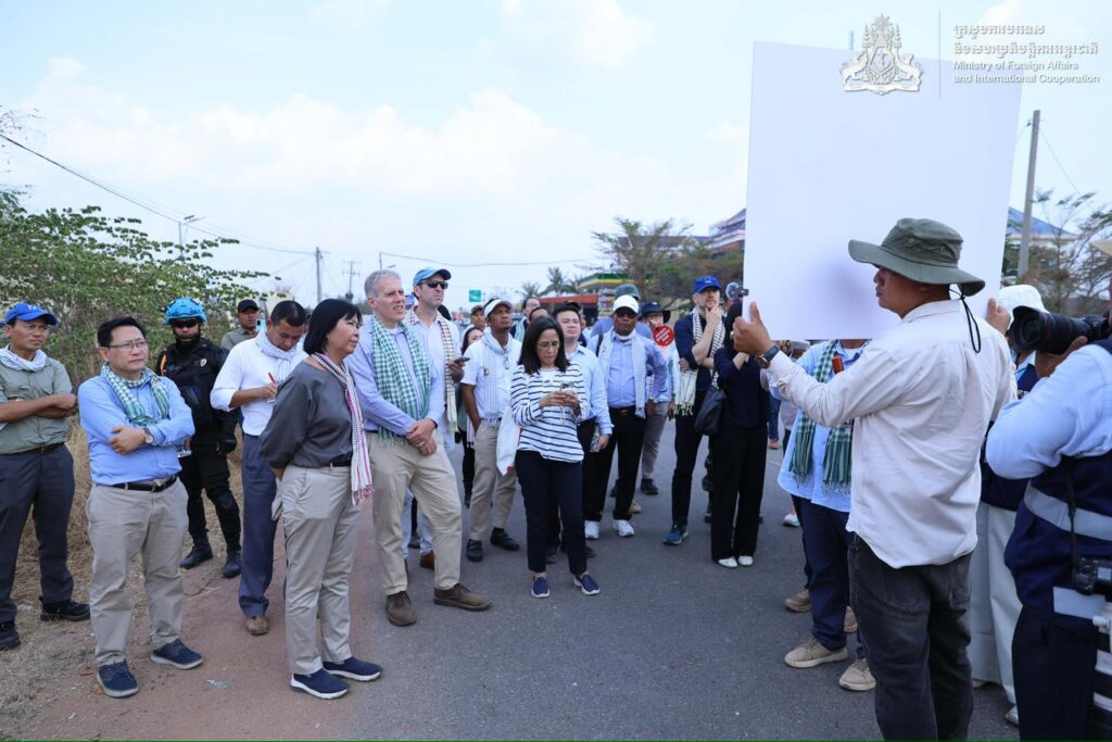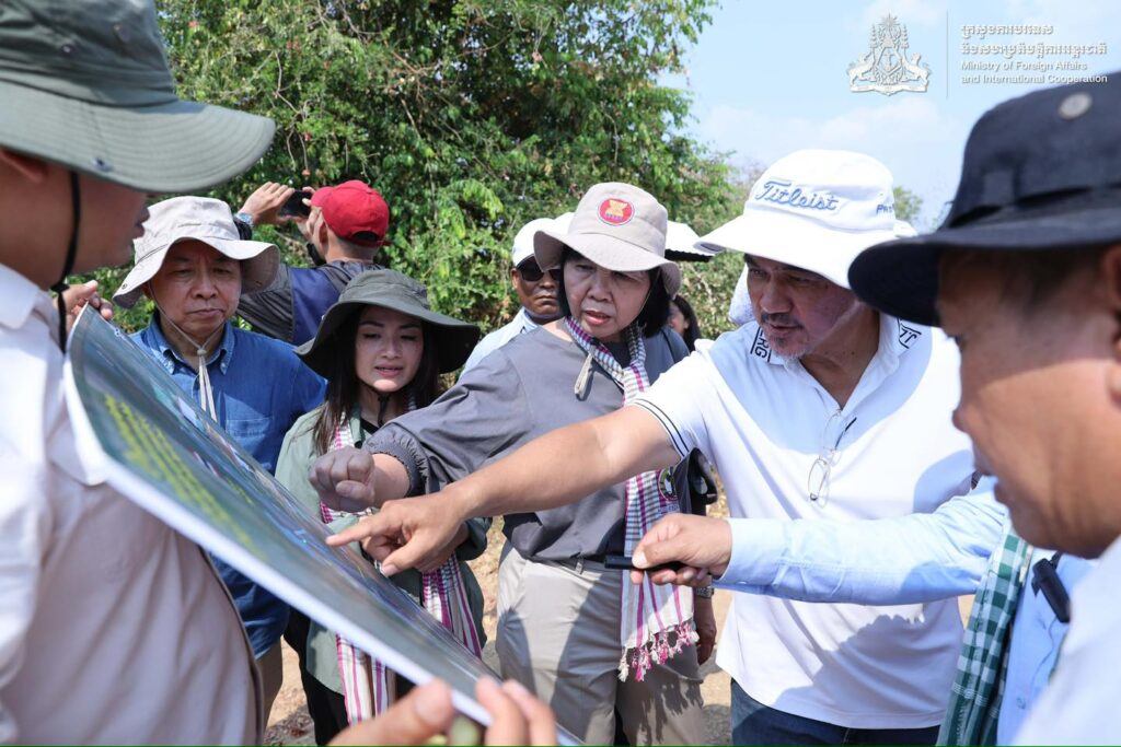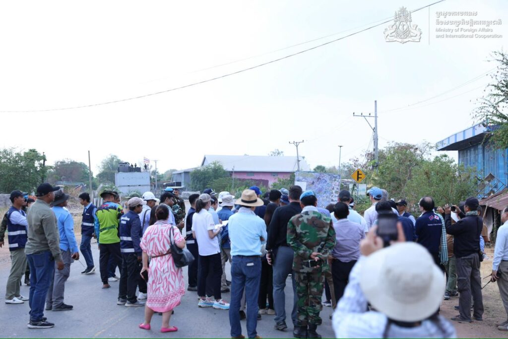 នៅថ្ងៃទី២៣ ខែកុម្ភៈ ឆ្នាំ២០២៦ លោកជំទាវ អ៊ាត សោភា រដ្ឋមន្រ្តីស្តីទីនៃក្រសួងការបរទេស និងសហប្រតិបត្តិការអន្តរជាតិ បានដឹកនាំអង្គទូត និងតំណាងទីភ្នាក់ងារអង្គការអន្តរជាតិប្រចាំកម្ពុជា ចុះពិនិត្យទីតាំង នៅភូមិជោគជ័យ ភូមិព្រៃចាន់ និងតំបន់បឹងត្រកួន ក្នុងខេត្តបន្ទាយមានជ័យ នៃប្រទេសកម្ពុជា ដែលកងទ័ពថៃបានឈ្លានពានកាន់កាប់ដោយអាវុធ ហើយបន្តដាក់ពង្រាយទូកុងតឺន័រ និងបន្លាលួស។
