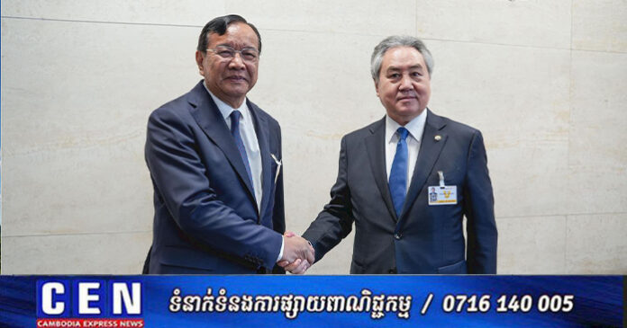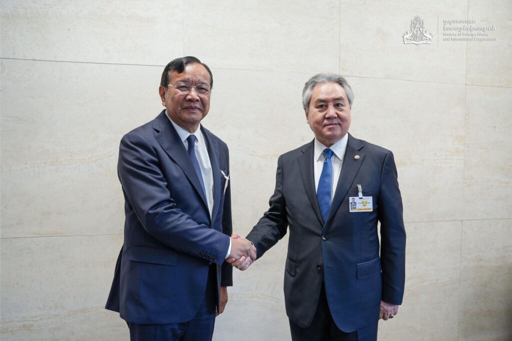 ប្រទេសស្វីស: នៅថ្ងៃទី២៣ ខែកុម្ភៈ ឆ្នាំ២០២៦ ឯកឧត្តមឧបនាយករដ្ឋមន្ត្រី ប្រាក់ សុខុន រដ្ឋមន្ត្រីការបរទេស និងសហប្រតិបត្តិការអន្តរជាតិ បានអញ្ជើញជួបពិភាក្សាការងារទ្វេភាគីជាមួយ ឯកឧត្តម Zheenbek Kulubaev រដ្ឋមន្ត្រីការបរទេស នៃសាធារណរដ្ឋកៀហ្ស៊ី នៅទីក្រុងហ្សឺណែវ ប្រទេសស្វីស។