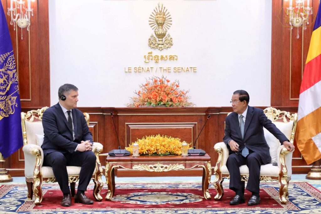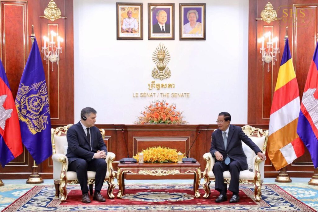 ភ្នំពេញ៖ នៅវិមានសាមគ្គីភាព នៃព្រឹទ្ធសភា នាព្រឹកថ្ងៃពុធ ៩កើត ខែផល្គុន ឆ្នាំម្សាញ់ សប្តស័ក ពុទ្ធសករាជ ២៥៦៩ ត្រូវនឹងថ្ងៃទី២៥ ខែកុម្ភៈ ឆ្នាំ២០២៦ សម្តេចអគ្គមហាសេនាបតីតេជោ ហ៊ុន សែន ប្រធានព្រឹទ្ធសភា នៃព្រះរាជាណាចក្រកម្ពុជា បានអនុញ្ញាតឱ្យប្រតិភូក្រុមមិត្តភាពសភា បារាំង-កម្ពុជា ដឹកនាំដោយឯកឧត្តម Thomas Lam ចូលជួបសម្ដែងការគួរសម និងពិភាក្សាការងារ។