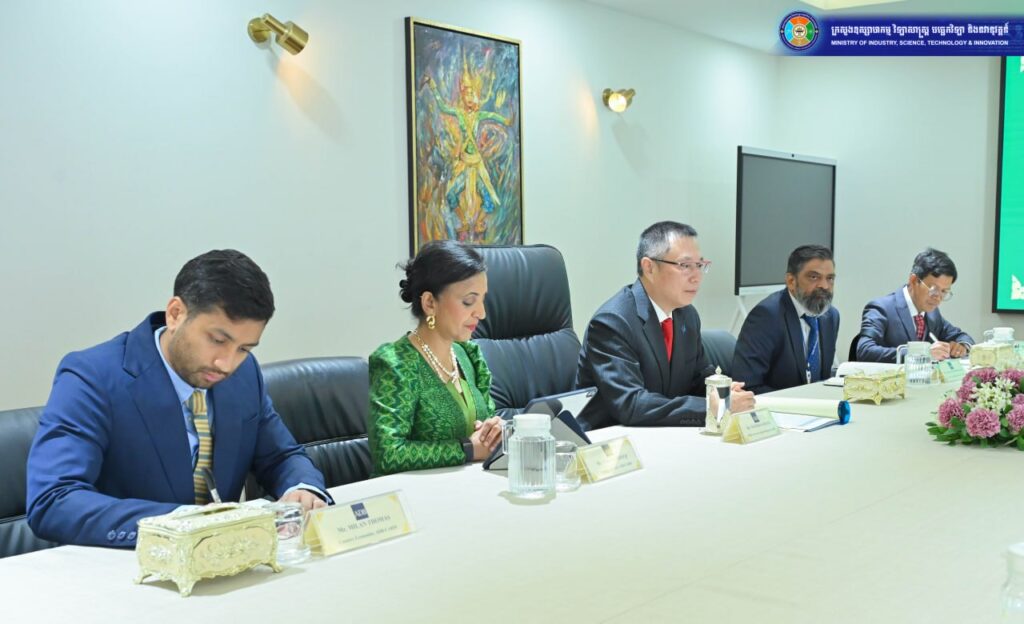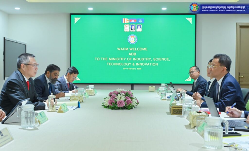 រាជធានីភ្នំពេញ ឯកឧត្តម ហែម វណ្ណឌី រដ្ឋមន្ត្រីក្រសួងឧស្សាហកម្ម វិទ្យាសាស្ត្រ បច្ចេកវិទ្យា និងនវានុវត្តន៍ បានទទួលជួបគណៈប្រតិភូធនាគារអភិវឌ្ឍន៍អាស៊ី (ADB) ដឹកនាំដោយ លោក Nianshan Zhang អគ្គនាយកទទួលបន្ទុកតំបន់អាស៊ីអាគ្នេយ៍ ដើម្បីពិភាក្សាអំពីកិច្ចសហប្រតិបត្តិការលើការកែទម្រង់វិស័យទឹកស្អាត និងការអភិវឌ្ឍហេដ្ឋារចនាសម្ព័ន្ធគុណភាពជាតិរបស់កម្ពុជា។ ជំនួបនេះបានធ្វើឡើងនាថ្ងៃទី២៥ ខែកុម្ភៈ ឆ្នាំ២០២៦នៅទីស្តីការក្រសួង។