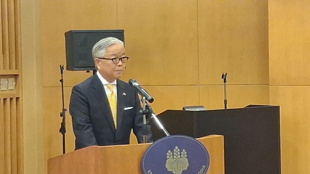 ក្នុងឱកាសនោះ ឯកឧត្តម អ៊ូអ៊ិណុ អាត់ស៊ូស៊ី ឯកអគ្គរាជទូតវិសាមញ្ញ និង ពេញសមត្ថភាពរបស់ប្រទេសជប៉ុនប្រចាំព្រះរាជាណាចក្រកម្ពុជា