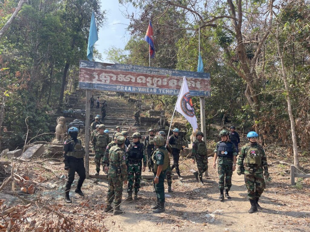 ខេត្តព្រះវិហារ ៖ លោកជំទាវ ឧត្តមសេនីយ៍ឯក ម៉ាលី សុជាតា អ្នកនាំពាក្យក្រសួងការពារជាតិ នៃព្រះរាជាណាចក្រកម្ពុជា សូមជម្រាបជូនសាធារណជន អ្នកសារព័ត៌មានជាតិ និងអន្តរជាតិមេត្តាជ្រាបថា៖ នៅព្រឹកថ្ងៃព្រហស្បតិ៍ ទី២៦ ខែកុម្ភៈ ឆ្នាំ២០២៦ វេលាម៉ោង១០:០០នាទី ក្រុមសម្របសម្រួល (CLG) នៃព្រះរាជាណាចក្រកម្ពុជា បានសម្របសម្រួលជូនដល់ក្រុមអ្នកសង្កេតការណ៍អាស៊ាន (AOT) ចុះសង្កេតការណ៍ ផ្ទៀងផ្ទាត់ និងរាយការណ៍ អំពីស្ថានភាពជាក់ស្តែងនៅលើទីតាំងផ្ទាល់ ក្រោយបទឈប់បាញ់ចូលជាធរមានកាលពីថ្ងៃទី២៧ ខែធ្នូ ឆ្នាំ២០២៥ នៅតំបន់ប្រាសាទព្រះវិហារ ស្ថិតក្នុងស្រុកជាំក្សាន្ត ខេត្តព្រះវិហារ។
