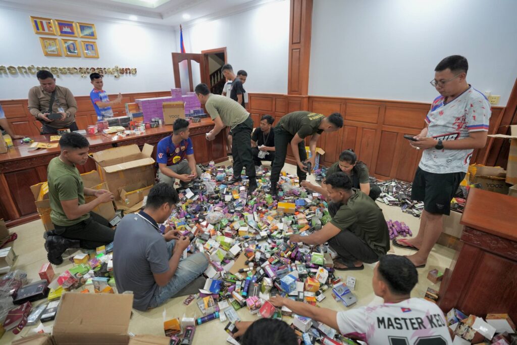 អ្នកលួចលក់ឧបករណ៍អេឡិចត្រូនិកសម្រាប់ជក់សារធាតុគីមី និងទីតាំងស្តុក១កន្លែង ស្ថិតនៅចំណុចភូមិថ្មី សង្កាត់ ស្វាយដង្គំ ក្រុងសៀមរាបខេត្តសៀមរាប ត្រូវបានកម្លាំងជំនាញ កងរាជអាវុធហត្ថខេត្តសៀមរាប សហការជាមួយកម្លាំងមូលដ្ឋានអាវុធហត្ថក្រុងសៀមរាប និងមានការសម្របសម្រួលនីតិវិធីពីលោក ងុិល សុវណ្ណារិទ្ធ ព្រះរាជអាជ្ញារងអមសាលាដំបូងខេត្តសៀមរាប បានចុះបង្ក្រាបជាបន្តបន្ទាប់ កាលពីវេលាម៉ោង វេលាម៉ោង ១៦ និង ៣០នាទី ថ្ងៃទី២៨ ខែកុម្ភៈ ឆ្នាំ២០២៦ និងបានចាប់យកវត្ថុតាង រួមមាន៖ ម៉ាសុីនចម្រុះម៉ាក សរុបចំនួន ១០,១៦៨ គ្រឿង ក្នុងនោះមាន ម៉ាស៊ីនជក់ ៤,២៦៨ដើម, ក្បាលជក់ចម្រុះម៉ាក ចំនួន ៥,៩០០ក្បាល ព្រមទាំង ឃាត់ខ្លួនជនសង្ស័យជាអ្នកលក់ និងម្ចាស់ទីតាំងចំនួន០២នាក់ បញ្ជូនទៅបញ្ជាការដ្ឋានកងរាជអាវុធហត្ថខេត្តសៀមរាប ដើម្បីចាត់ការតាមនីតិវិធីច្បាប់។