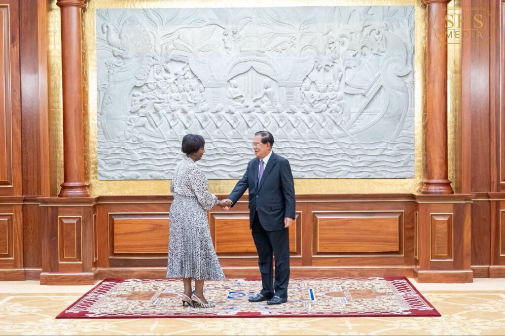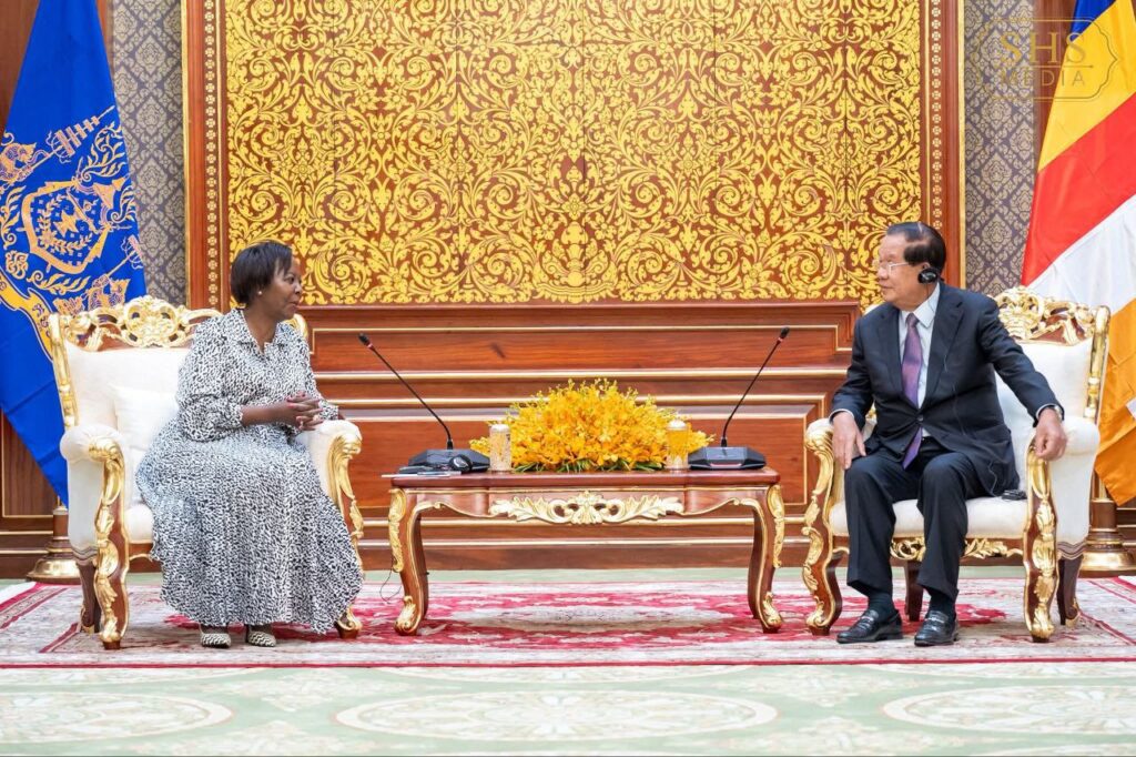 បានអរគុណចំពោះសម្តេចតេជោ និងការបដិសណ្ឋារកិច្ចស្វាគមន៍ចំពោះលោកជំទាវនិងគណៈប្រតិភូនៅពេលនេះ។ លោកជំទាវបានរំលេចពេលដែលលោកជំទាវបានអញ្ជើញមកដល់កម្ពុជា គឺលោកជំទាវបានឃើញពីភាពរីកចម្រើនរបស់កម្ពុជា ជាពិសេសនៅអាកាសយានដ្ឋានអន្តរជាតិតេជោ ដែលជាអាកាសយានដ្ឋានថ្មីរបស់កម្ពុជា ដែលមានភាពស្រស់ស្អាត ហើយអាកាសយានដ្ឋាននេះកំពុងរង់ចាំប្រតិភូថ្នាក់ដឹកនាំបណ្ដាប្រទេសនៃអង្គការអន្តរជាតិ