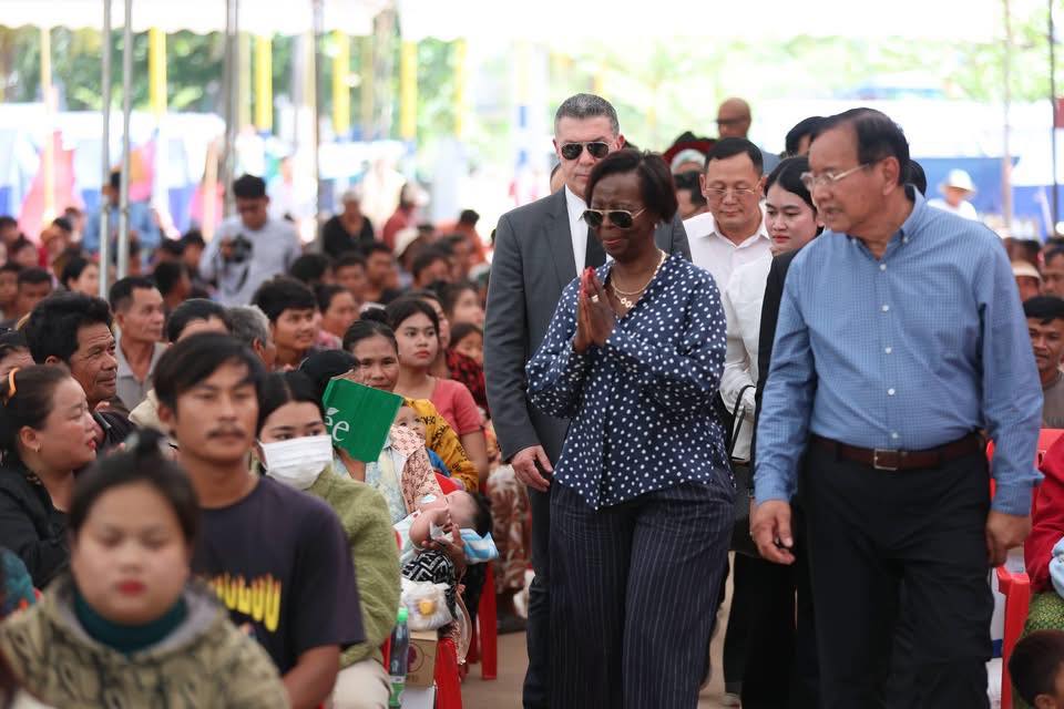 ខេត្តសៀមរាប ៖ លោកជំទាវ ល្វីស មូស៊ីគីវ៉ាបូ (Louise MUSHIKIWABO) អគ្គលេខាធិការអង្គការអន្តរជាតិ នៃក្រុមប្រទេសនិយាយភាសាបារាំង (OIF) និងឯកឧត្តមឧបនាយករដ្ឋមន្ត្រី ប្រាក់ សុខុន រដ្ឋមន្ត្រីក្រសួងការបរទេស និងសហប្រតិបត្តិការអន្តរជាតិ នៅថ្ងៃទី៣ ខែមីនា ឆ្នាំ២០២៦នេះ អញ្ជើញចុះទៅសួរសុខទុក្ខជនភៀសសឹកកម្ពុជា ដែលមិនទាន់បានត្រឡប់ទៅលំនៅឋាន នៅមណ្ឌលសុវត្ថិភាពវត្តធម្មរង្សី ហៅវត្តសំពៅលូន ស្ថិតនៅភូមិសំពៅលូន ឃុំក្រឡាញ់ ស្រុកក្រឡាញ់ ខេត្តសៀមរាប ។