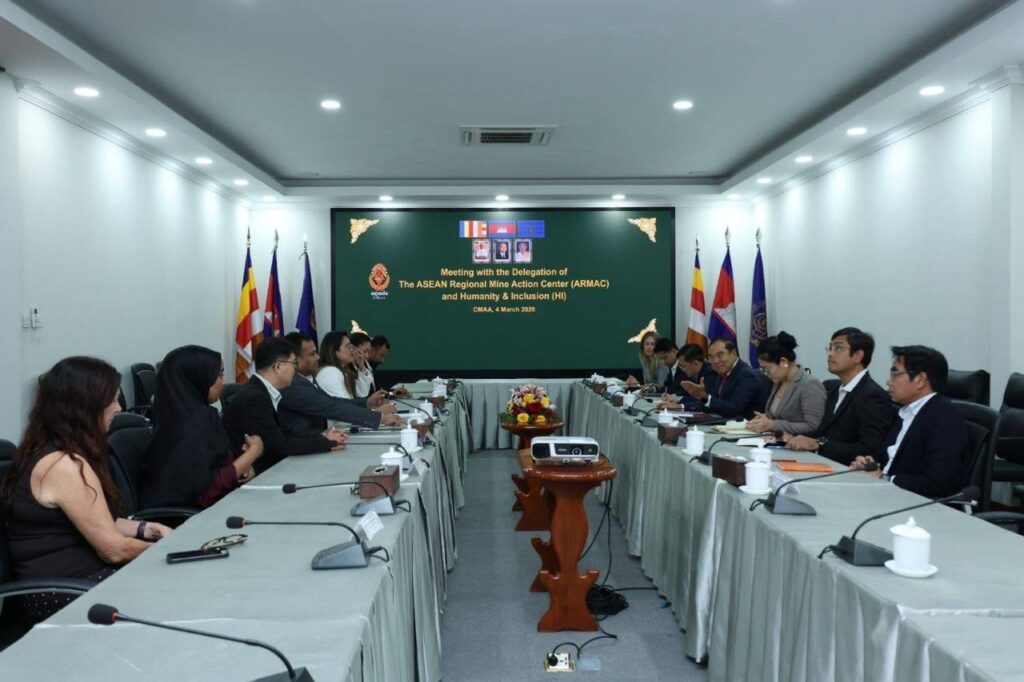 ភ្នំពេញ ៖ ថ្ងៃទី០៤ ខែមីនា ឆ្នាំ២០២៦ នៅទីស្នាក់ការអាជ្ញាធរមីន ឯកឧត្តមបណ្ឌិត លី ធុជ ទេសរដ្ឋមន្រ្តី និងជាអនុប្រធានទី១ អាជ្ញាធរមីន បានអនុញ្ញាតឱ្យលោកស្រី ប៊ុត រតនា នាយិកាប្រតិបត្តិនៃមជ្ឈមណ្ឌលតំបន់អាស៊ានសម្រាប់សកម្មភាពមីន (ARMAC) និងលោក Rejib DAKUA នាយកប្រចាំប្រទេសនៃអង្គការ Humanity & Inclusion (H&I) ដើម្បីពង្រឹងកិច្ចសហប្រតិបត្តិការលើជំនួយជនរងគ្រោះ និងផ្លាស់ប្តូរយោបល់ស្តីពីការបង្កើតគោលការណ៍ណែនាំជាតិសម្រាប់ជំនួយជនរងគ្រោះ។