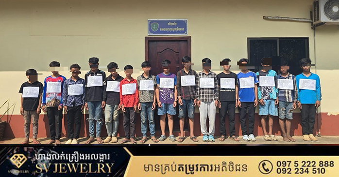 ខេត្តព្រះវិហារ៖ ដោយអនុវត្តតាមអនុសាសន៍ដ៏ខ្ពង់ខ្ពស់របស់ ឯកឧត្តម នាយឧត្តមសេនីយ៍ ស ថេត អគ្គស្នងការនគរបាលជាតិ និងការចង្អុលដឹកនាំដោយផ្ទាល់ពី លោកឧត្ដមសេនីយ៍ទោ សួស សុខដារ៉ា ស្នងការនគរបាលខេត្តព្រះវិហារ កម្លាំងសមត្ថកិច្ចជំនាញការិយាល័យនគរបាលព្រហ្មទណ្ឌកម្រិតស្រាល នៃស្នងការដ្ឋាននគរបាលខេត្តព្រះវិហារ សហការជាមួយ កម្លាំងអធិការដ្ឋាននគរបាលស្រុករវៀង ដឹកនាំដោយ លោកវរសេនីយ៍ឯក គង់ គា នាយការិយាល័យនគរបាលព្រហ្មទណ្ឌកម្រិតស្រាល ធ្វេីការបង្ក្រាបឃាត់ខ្លួនក្រុមក្មេងទំនើងសរុបចំនួន ១៥នាក់ប្រុស ដែលបានធ្វើសកម្មភាព ប្រេីប្រាស់មួកសុវត្ថិភាព ដុំថ្ម វាយ និងគប់គ្នា នៅចំណុចទំនប់៥២ ស្ថិតក្នុងភូមិប៉ាលហាល ឃុំរីរាយ ស្រុករវៀង ខេត្តព្រះវិហារ កាលពីថ្ងៃទី២៨ ខែកុម្ភៈ ឆ្នាំ២០២៦ វេលាម៉ោង១៥:៣០នាទី។