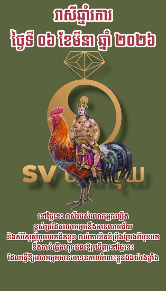 នៅថ្ងៃនេះ រាសីរបស់លោកអ្នកឡើង ខ្ពស់ត្រដែត។ លោកអ្នកនឹងមានលាភជ័យ និងសិរីសួស្តីចូលមកជិតខ្លួន។ រាល់ការខិតខំប្រឹងប្រែងពីមុនមក នឹងចាប់ផ្តើមហុចផលឱ្យឃើញនៅថ្ងៃនេះ ដែលធ្វើឱ្យលោកអ្នកមានមោទនភាពចំពោះខ្លួនឯងយ៉ាងខ្លាំង។