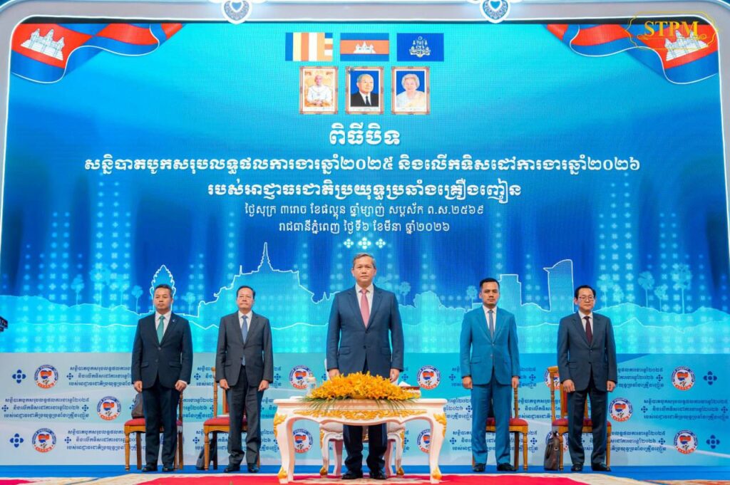 ភ្នំពេញ ៖ ក្នុងឱកាសអញ្ជើញជាអធិបតីបិទបិទសន្និបាតបូកសរុបលទ្ធផលការងារឆ្នាំ២០២៥ និងលើកទិសដៅការងារឆ្នាំ២០២៦ របស់អាជ្ញាធរជាតិប្រយុទ្ធប្រឆាំងគ្រឿងញៀន និងផ្សព្វផ្សាយផែនការយុទ្ធនាការប្រយុទ្ធប្រឆាំងគ្រឿងញៀនខុសច្បាប់លើកទី១១នៅថ្ងៃទី៦ ខែមីនា ឆ្នាំ២០២៦ សម្ដេចមហាបវរធិបតី ហ៊ុន ម៉ាណែត នាយករដ្ឋមន្រ្តីនៃព្រះរាជាណាចក្រកម្ពុជា បានថ្លែងថា ការប្រយុទ្ធប្រឆាំងគ្រឿងញៀន គឺជាការរួមចំណែក និងជំរុញការអនុវត្ត “គោលនយោបាយ ភូមិ ឃុំ សង្កាត់ មានសុវត្ថិភាព” ពិសេសការកែទម្រង់ស្ថាប័ន និងការអភិវឌ្ឍធនធានមនុស្សសំដៅពង្រឹង “សុខដុមនីយកម្មក្នុងសហគមន៍” លើកកម្ពស់សុខុមាលភាពប្រជាពលរដ្ឋតាមមូលដ្ឋាន និងជំរុញការអភិវឌ្ឍសង្គមសេដ្ឋកិច្ចប្រកបដោយបរិយាប័ន្ន និងចីរភាព។