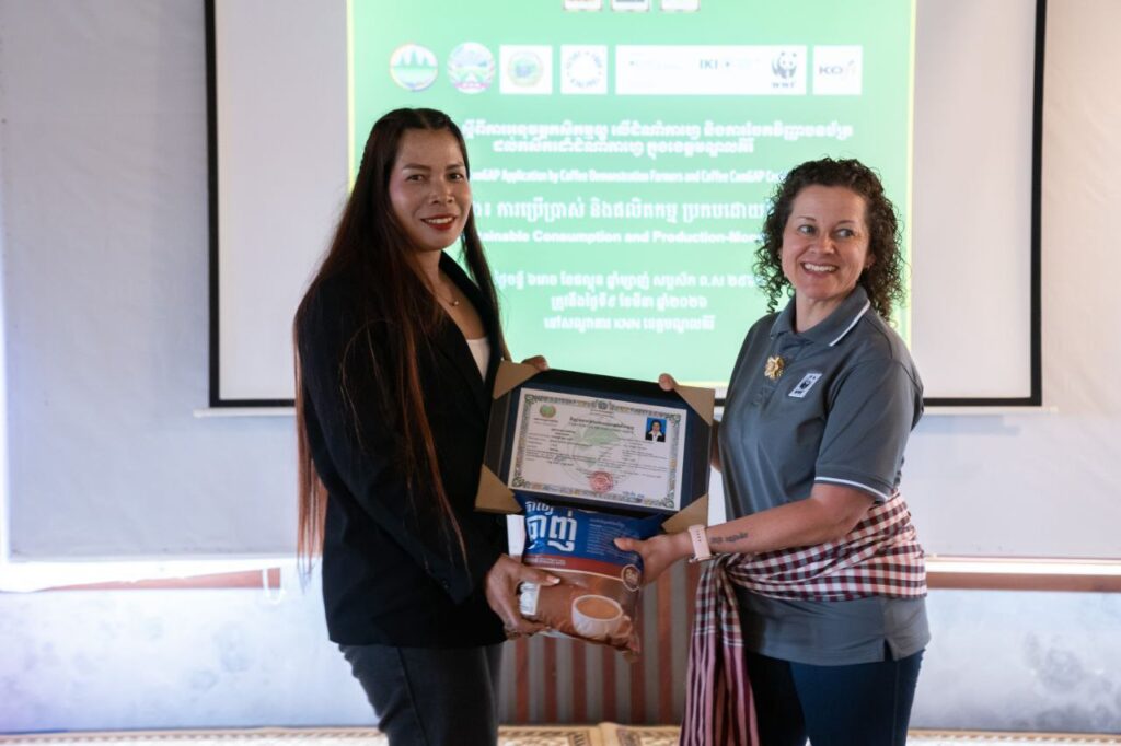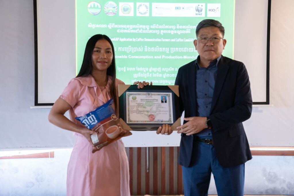 សូមបញ្ជាក់ថា កម្មវិធីផ្តល់វិញ្ញាបនបត្រ CamGAPនេះ ជាលទ្ធផលនៃការសហការរវាង អគ្គនាយកដ្ឋានកសិកម្ម មន្ទីរកសិកម្ម រុក្ខាប្រមាញ់ និងនេសាទ ខេត្តមណ្ឌលគិរី មន្ត្រីកសិកម្មឃុំ អង្គការWWF និងក្រុមហ៊ុន KOFI ក្នុងការជំរុញការផលិតកាហ្វេប្រកបដោយស្តង់ដារ និរន្តរភាព និងបង្កើនភាពធន់នឹងការផ្លាស់ប្តូរអាកាសធាតុ៕រក្សាសិទ្ធដោយ៖សុទ្ធលី
