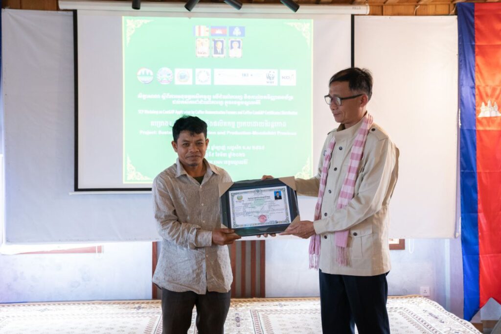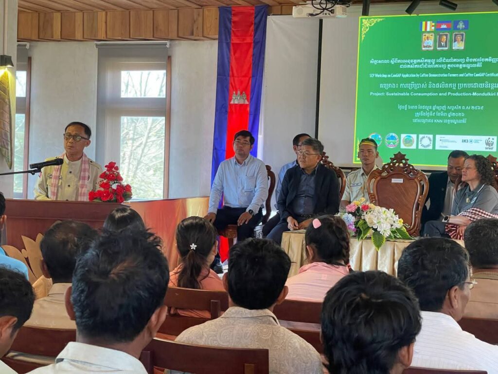 នៅថ្ងៃទី៩ ខែមីនា ឆ្នាំ២០២៦ ឯកឧត្តមបណ្ឌិត យ៉ង សាំង កុមារ រដ្ឋលេខាធិការក្រសួងកសិកម្ម រុក្ខាប្រមាញ់ និងនេសាទ បានអញ្ជើញជាអធិបតីភាព ក្នុងពិធីផ្តល់វិញ្ញាបនបត្រ CamGAP ជូនដល់កសិករអ្នកដាំកាហ្វេចំនួន២៦នាក់ នៅខេត្តមណ្ឌលគិរី។