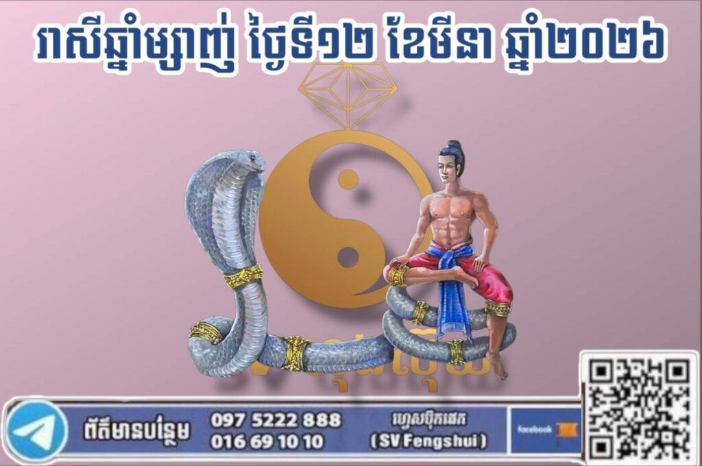 សម្រាប់លោកអ្នកដែលកើត ឆ្នាំម្សាញ់ (ពស់) ហោរាសាស្ត្រប្រចាំថ្ងៃ ព្រហស្បតិ៍ ទី១២ ខែមីនា ឆ្នាំ២០២៦ នេះ បង្ហាញថា រាសីរបស់លោកអ្នកស្ថិតក្នុងកម្រិត ល្អបង្គួរ។ បន្ទាប់ពីថ្ងៃម្សិលមិញដែលឡើងខ្ពស់ខ្លាំង ថ្ងៃនេះជាថ្ងៃដែលត្រូវ “ប្រើប្រាជ្ញាស្មារតី និងភាពហ្មត់ចត់” ដើម្បីបន្តជោគជ័យ។