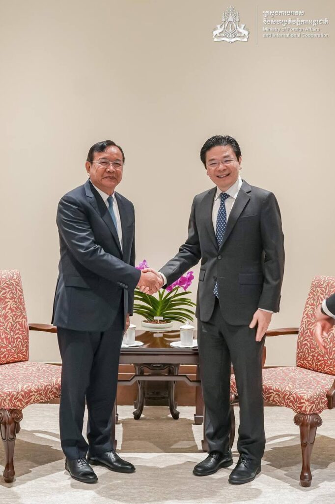 ឯកឧត្តមរដ្ឋមន្ត្រីការបរទេសទាំងពីរបានបញ្ជាក់សាជាថ្មីនូវការប្តេជ្ញារួម ក្នុងការជំរុញទំនាក់ទំនាក់ដ៏ កក់ក្ដៅដែលមានស្រាប់ ហើយបានសង្កត់ធ្ងន់អំពីសារសំខាន់នៃការប្រាស្រ័យទាក់ទងកម្រិតខ្ពស់ជាទៀតទាត់ ដែលជាកត្តាដ៏សំខាន់សម្រាប់ជំរុញភាពជាដៃគូរវាងប្រទេសទាំងពីរ ដែលកំពុងមានការរីកចម្រើន ។ ទស្សនកិច្ច ផ្លូវការរបស់សម្ដេចមហាបវរធិបតី ហ៊ុន ម៉ាណែត នាយករដ្ឋមន្ត្រីនៃព្រះរាជាណាចក្រកម្ពុជា នៅប្រទេសសិង្ហបុរី ។ នៅក្នុងខែមិថុនា ឆ្នាំ២០២៤ និងទស្សនកិច្ចផ្លូវការរបស់ឯកឧត្ដមនាយករដ្ឋមន្ដ្រី ឡរ៉េន វ៉ុង នៅកម្ពុជា នៅក្នុងខ កក្កដា ឆ្នាំ២០២៥ គឺជាព្រឹត្តិការណ៍ដ៏សំខាន់នៃមិត្តភាពដ៏យូរអង្វែងរវាងកម្ពុជា និងសិង្ហបុរី។