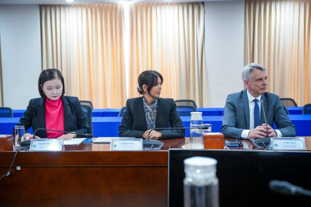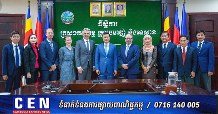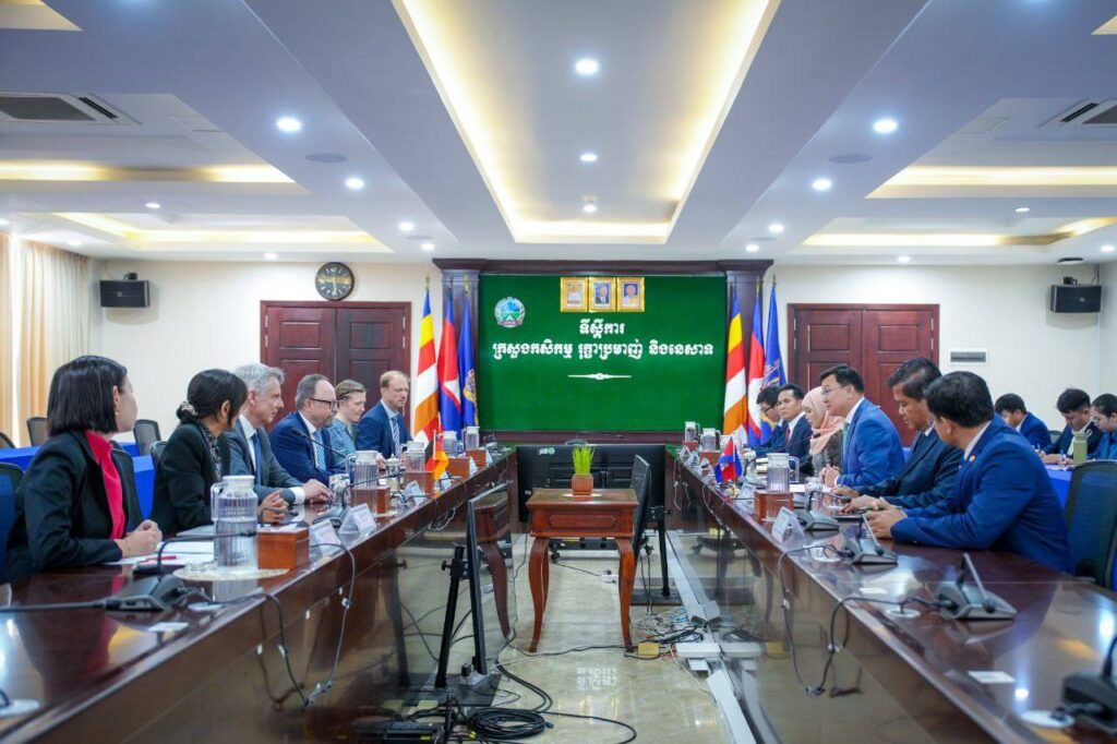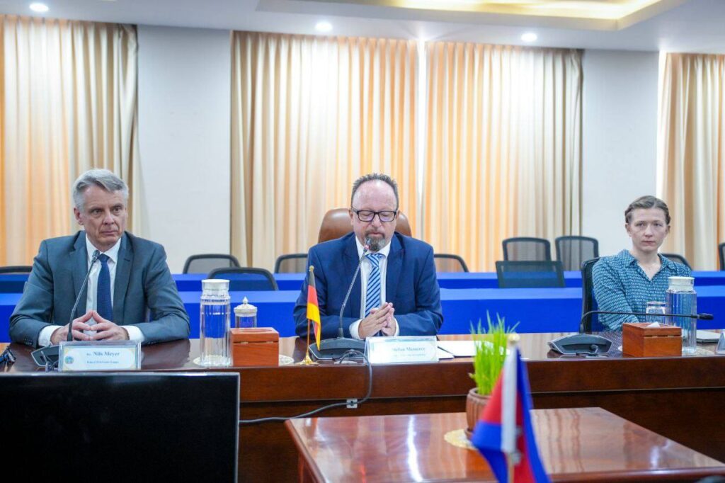 ភ្នំពេញ ៖ នាព្រឹកថ្ងៃទី១២ ខែមីនា ឆ្នាំ២០២៦ ឯកឧត្តម ឌិត ទីណា រដ្ឋមន្រ្តីក្រសួងកសិកម្ម រុក្ខាប្រមាញ់ និងនេសាទ បានអញ្ជេីញជួបជាមួយ ឯកឧត្តម Stefan Messerer ឯកអគ្គរដ្ឋទូតវិសាមញ្ញ និងពេញសមត្ថភាពនៃសាធារណរដ្ឋសហព័ន្ធអាល្លឺម៉ង់ និងប្រតិភូក្រុមហ៊ុនអាល្លឺម៉ង់ Fuchs Gruppe ដឹកនាំដោយលោកអគ្គនាយក Nil Meyer-Pries ក្នុងជំនួបសម្តែងការគួរសម និងពិភាក្សាការងារ នៅទីស្តីការក្រសួងកសិកម្ម រុក្ខាប្រមាញ់ និងនេសាទ។