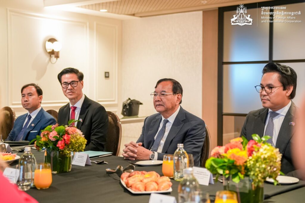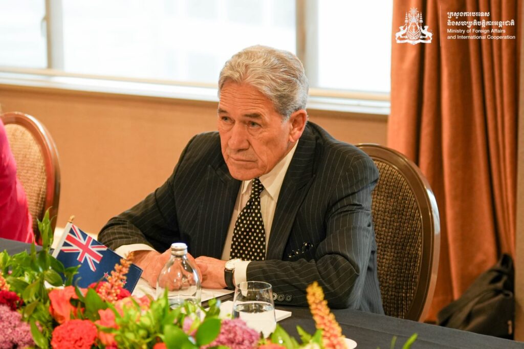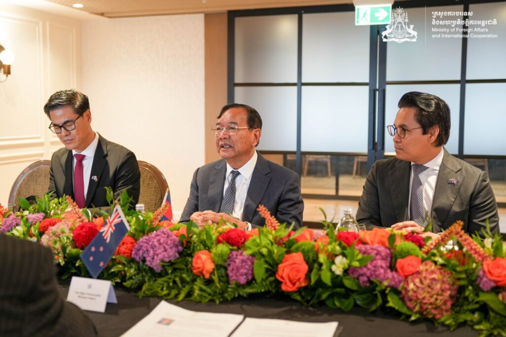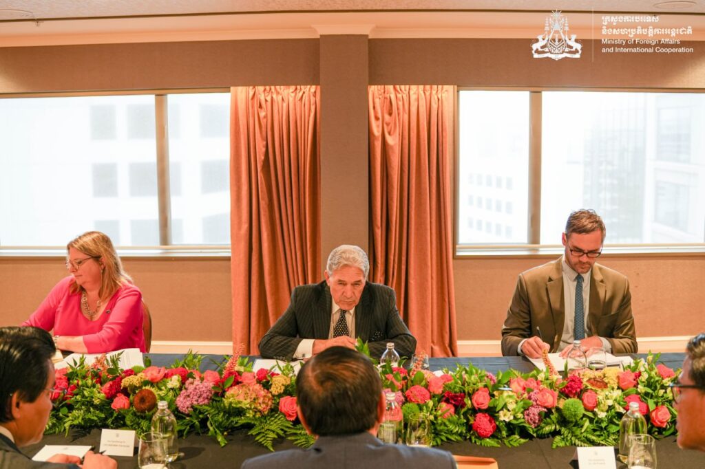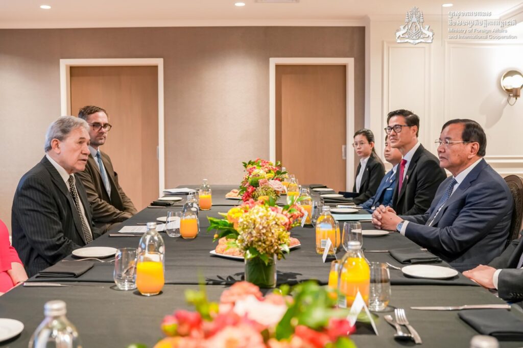 នៅព្រឹកថ្ងៃដដែល ឯកឧត្តមឧបនាយករដ្ឋមន្ត្រី ប្រាក់ សុខុន រដ្ឋមន្ត្រីការបរទេស និងសហប្រតិបត្តិការអន្តរជាតិ នៃព្រះរាជាណាចក្រកម្ពុជា បានអញ្ជើញជួបជជែកពិភាក្សាទ្វេភាគី ជាមួយ ឯកឧត្តម វីនស្តុន ភីធឺរ រដ្ឋមន្ត្រីការបរទេសនូវែលសេឡង់។