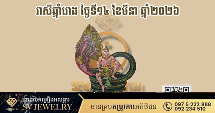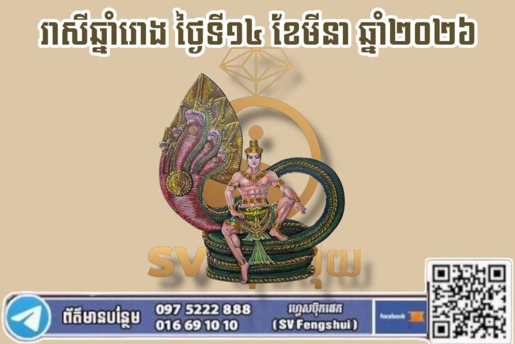 ក្នុងថ្ងៃនេះ អ្នកឆ្នាំរោងមានតេជៈបារមីខ្ពស់ អាចគ្រប់គ្រងស្ថានការណ៍ជុំវិញខ្លួនបានល្អ។ ទោះបីជាមានរឿងរ៉ាវបន្តិចបន្តួចមកទើសចិត្ត ក៏អ្នកអាចដោះស្រាយបានដោយសន្តិវិធី។ អ្វីដែលសំខាន់បំផុតគឺ “ការរក្សាចិត្តឱ្យស្ងប់” វានឹងនាំសំណាងមកឱ្យអ្នក។