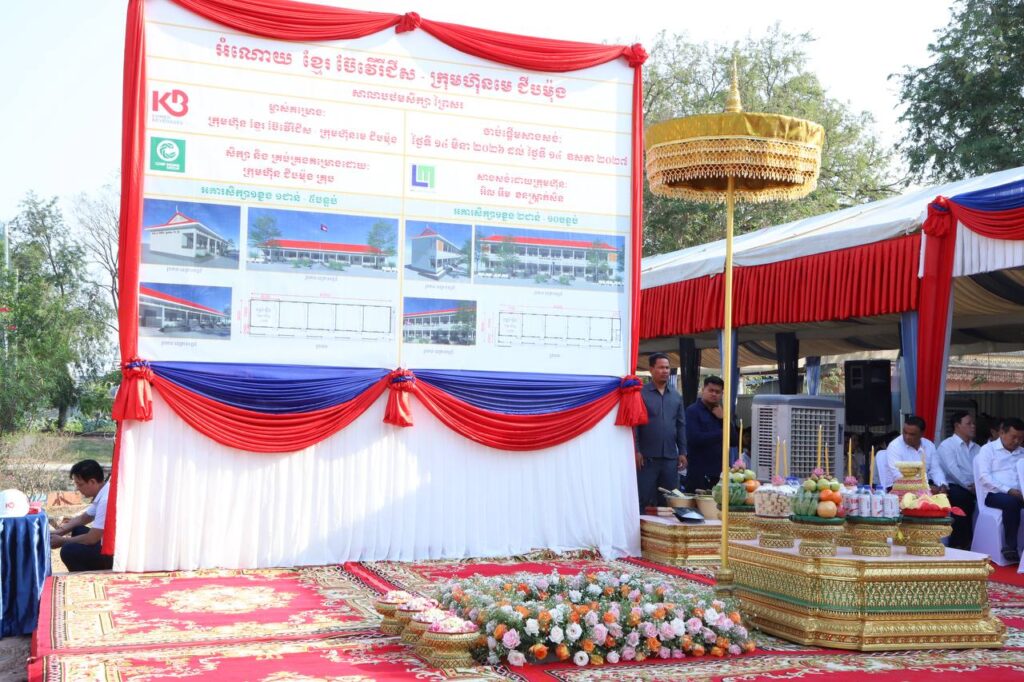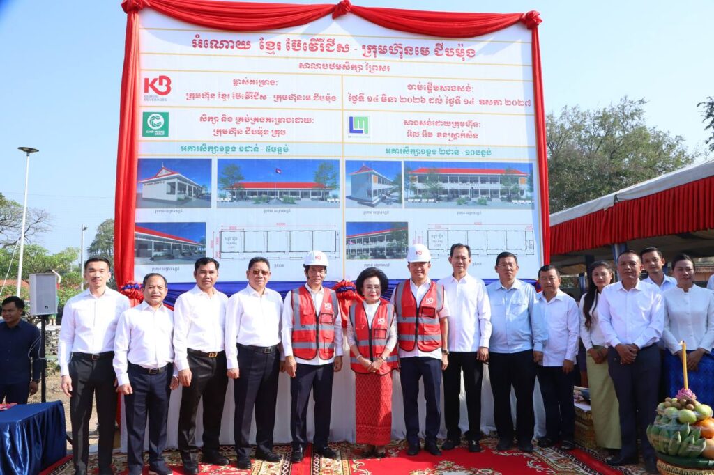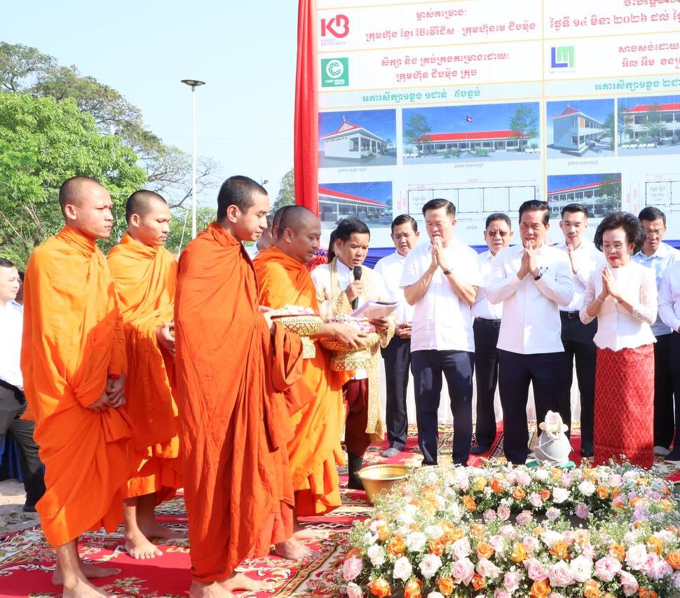 ភ្នំពេញ៖ការដ្ឋានសាងសង់អគារសិក្សា២ខ្នងមានចំនួន១៥បន្ទប់នៅសាលាបឋមសិក្សាព្រៃស សង្កាត់ព្រៃស ខណ្ឌដង្កោ ដែលជាអំណោយ ក្រុមហ៊ុនខ្មែរ ប៊ែវើរីជីស – ក្រុមហ៊ុនមេ ជីបម៉ុងបានរៀបចំធ្វើពិធីក្រុងពាលីនាព្រឹកថ្ងៃទី ១៤ មិនា ២០២៦ ក្រោមអធិបតីភាព ឯកឧត្ដម ឃួង ស្រេង អភិបាលរាជធានីភ្នំពេញ ,អ្នកឧកញ៉ា លាង ម៉េង និងលោកជំទាវអ្នកឧកញ៉ា ភាព ហៀក និងមានការចូលរួមពីលោកគ្រូ អ្នកគ្រូ សិស្សានុសិស្ស និងមន្ត្រីរាជការជាច្រើនរូប។