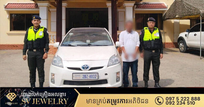 សៀមរាប ៖ កាលពីថ្ងៃទី១៣ ខែមីនា ឆ្នាំ២០២៦ កងរាជអាវុធហត្ថខេត្តសៀមរាប បានទទួលពាក្យបណ្តឹងពីជនរងគ្រោះ តាមរយៈលេខទូរស័ព្ទបន្ទាន់ (Hotline) 1296 សុំអន្តរាគមន៍ករណីរំលោភលើទំនុកចិត្ត និងប្រើប្រាស់ឯកសារសាធារណៈក្លែង ដោយម្ចាស់ រថយន្តបានប្រទះឃើញរថយន្តរបស់ខ្លួន ដែលបានជួល បែរជាឃើញលក់ទៅឲ្យបុគ្គលផ្សេង។ ក្រោយពីទទួល បណ្ដឹងភ្លាម កម្លាំងការិយាល័យជំនាញ នៃកងអាវុធហត្ថខេត្តសៀមរាប បានចុះទៅដល់កន្លែងកើតហេតុឃាត់ខ្លួនជនសង្ស័យ០១នាក់ ឈ្មោះ ធឹម សាលួត ភេទប្រុស នាំយកទៅកាន់ទីបញ្ជាការកងរាជអាវុធហត្ថខេត្តសៀមរាបដើម្បីធ្វើការសាកសួរ និងចាត់ការតាមនីតិវិធីច្បាប់។ វត្ថុតាងចាប់យករួមមាន៖ រថយន្ត០១គ្រឿង ម៉ាក TOYOTA PRIUS ផលិតឆ្នាំ២០១០ ពណ៌ស ផ្លាកលេខ ភ្នំពេញ 2BZ-4032 និងឯកសារក្លែងមួយចំនួនទៀត។