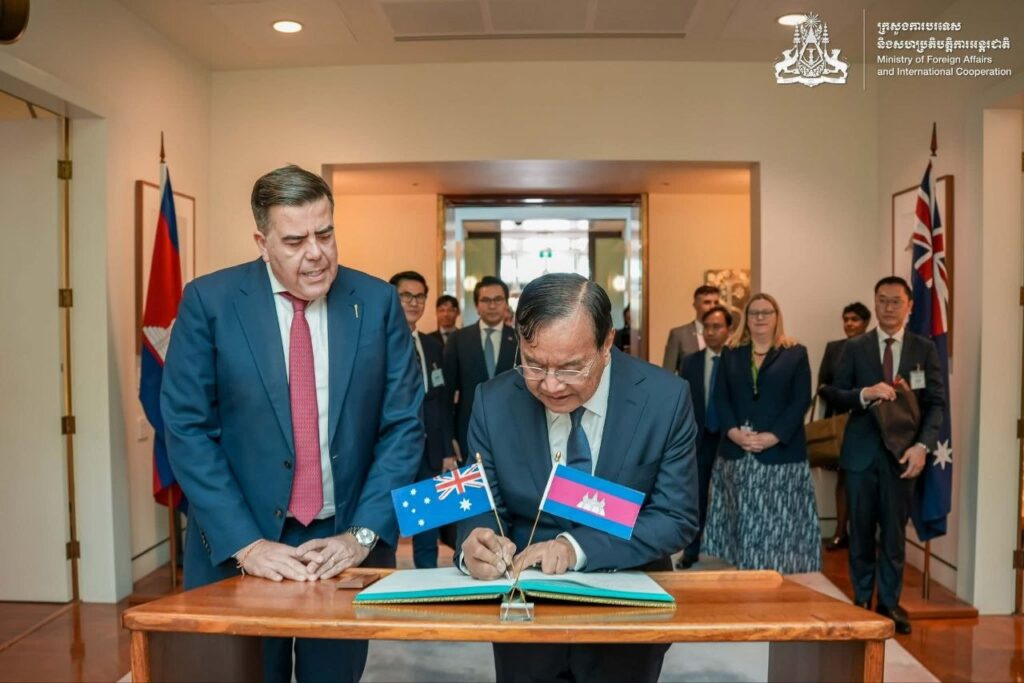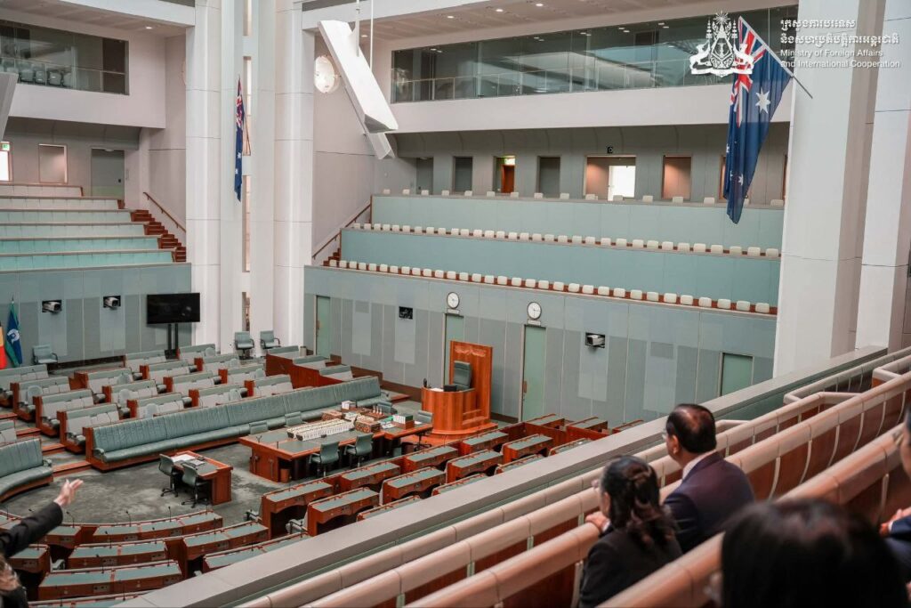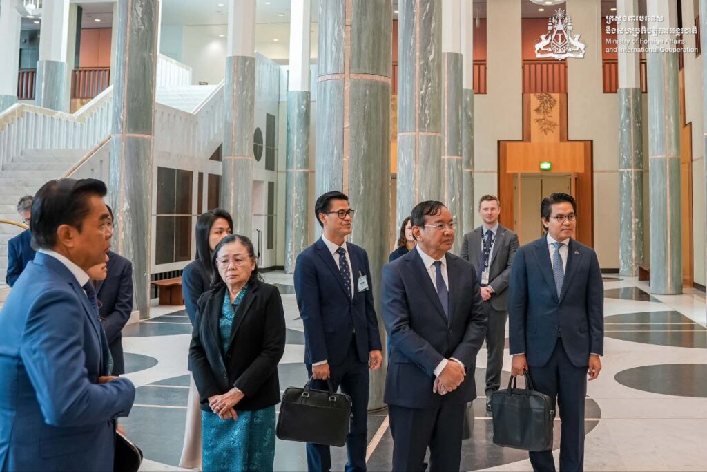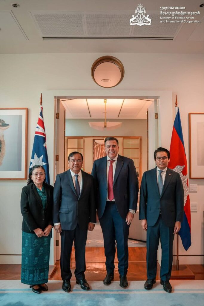 នៅព្រឹកថ្ងៃទី១៦ ខែមីនា ឆ្នាំ២០២៦ ឯកឧត្តមឧបនាយករដ្ឋមន្ត្រី ប្រាក់ សុខុន រដ្ឋមន្ត្រីការបរទេស និងសហប្រតិបត្តិការអន្តរជាតិ នៃព្រះរាជាណាចក្រកម្ពុជា បានអញ្ជើញចូលជួបសម្តែងការគួរសមចំពោះ ឯកឧត្តម Milton Dick ប្រធានរដ្ឋសភាអូស្ត្រាលី។