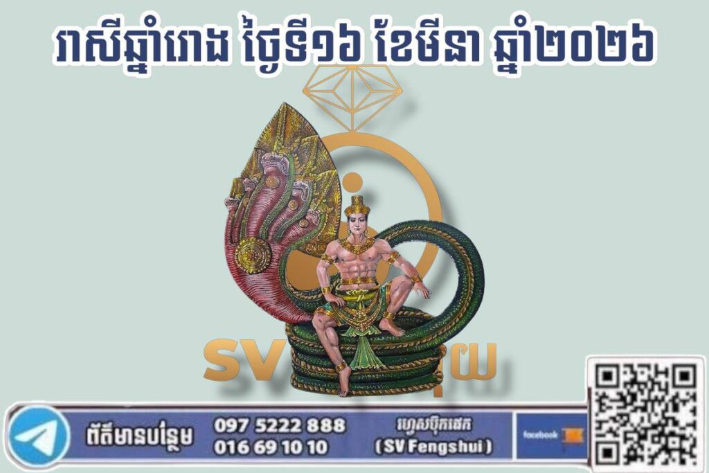 ថ្ងៃនេះអ្នកមាន “តេជៈបារមី” ខ្ពស់ ធ្វើឱ្យមនុស្សជុំវិញខ្លួនមានការកោតក្រែង និងគោរពស្រឡាញ់។ រាល់បំណងប្រាថ្នាដែលអ្នកបានគ្រោងទុក នឹងមានពន្លឺជោគជ័យ។ ប្រសិនបើអ្នកមានបញ្ហាអ្វីមួយដែលមិនទាន់ដោះស្រាយចេញកាលពីសប្តាហ៍មុន ថ្ងៃនេះគឺជាពេលវេលាដ៏ស័ក្តិសមបំផុតក្នុងការបញ្ចប់វាដោយរលូន។