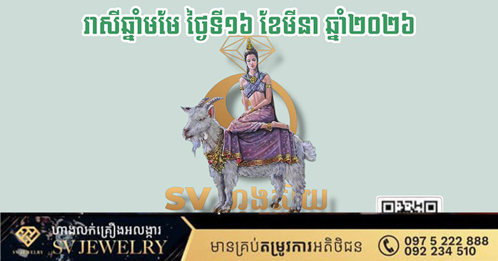 ថ្ងៃនេះលោកអ្នកមានមន្តស្នេហ៍ និងមានគេអាណិតស្រឡាញ់ច្រើន។ រាល់កិច្ចការងារទាំងឡាយដែលលោកអ្នកបានគ្រោងទុក នឹងមានពន្លឺជោគជ័យ។ ប្រសិនបើមានបញ្ហាអ្វីមួយដែលនៅសេសសល់ពីសប្តាហ៍មុន ថ្ងៃនេះលោកអ្នកនឹងរកឃើញដំណោះស្រាយយ៉ាងងាយស្រួលតាមរយៈការជួយជ្រោមជ្រែងពីមនុស្សខ្ពង់ខ្ពស់។