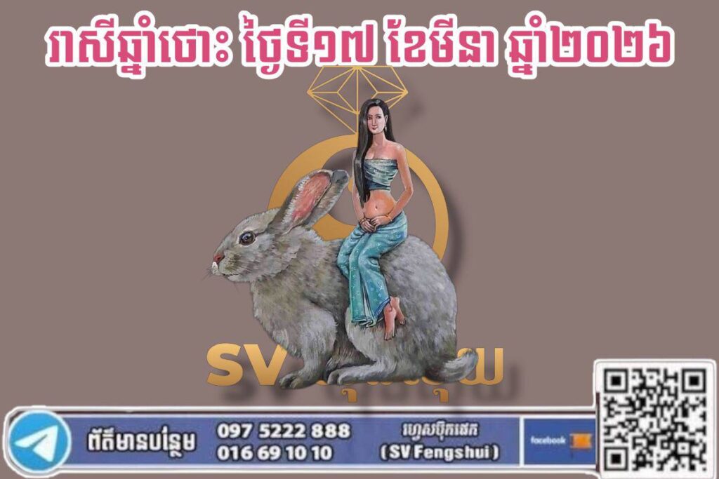 ថ្ងៃនេះលោកអ្នកមាន “ផ្កាយសំណាង” ជួយគាំពារ ធ្វើឱ្យចិត្តគំនិតភ្លឺស្វាង និងមានសិរីសួស្តីខ្លាំង។ រាល់ការភ័យព្រួយ ឬឧបសគ្គដែលធ្លាប់មាន នឹងត្រូវរលាយបាត់ទៅវិញ ហើយជំនួសមកវិញនូវដំណឹងល្អ និងឱកាសមាសដែលនឹងមកដល់ដៃក្នុងពេលឆាប់ៗ។