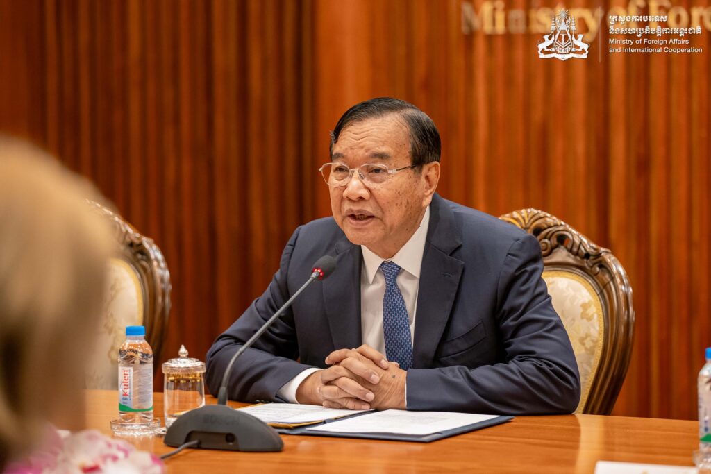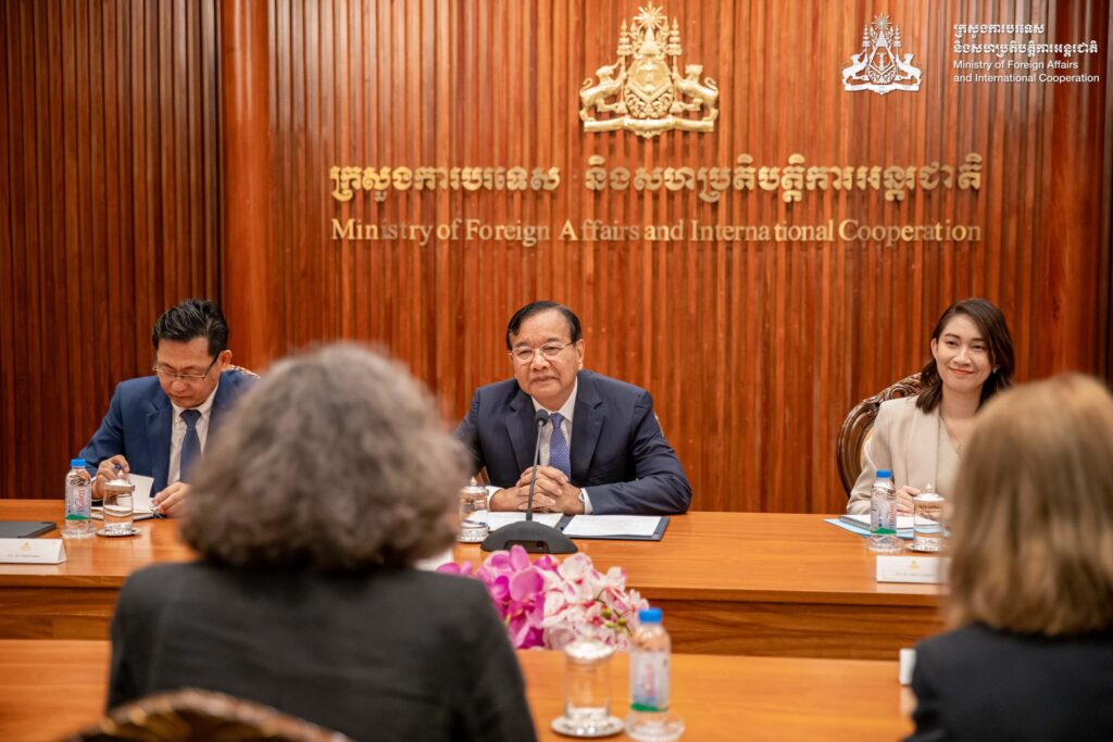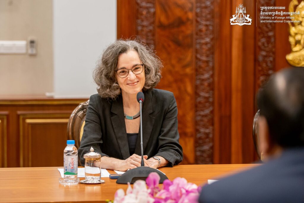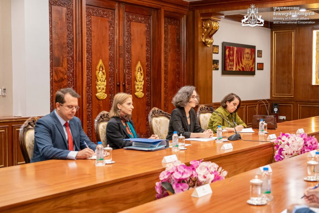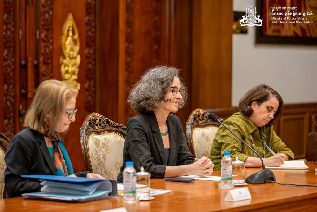 ភ្នំពេញ ៖ នៅព្រឹកថ្ងៃទី១៩ ខែមីនា ឆ្នាំ២០២៦ នៅទីស្តីការក្រសួង ឯកឧត្តមឧបនាយករដ្ឋមន្ត្រី ប្រាក់ សុខុន រដ្ឋមន្ត្រីការបរទេស និងសហប្រតិបត្តិការអន្តរជាតិ បានទទួលជំនួបសម្តែងការគួរសមរបស់ លោកជំទាវ Susan Kleebank អនុរដ្ឋមន្រ្តីការបរទេសទទួលបន្ទុកអាស៊ី និងប៉ាស៊ីហ្វិកនៃក្រសួងការបរទេសប្រេស៊ីល ក្នុងឱកាសដែលលោកជំទាវអញ្ជើញមកបំពេញទស្សនកិច្ចការងារ ដើម្បីធ្វើជាសហប្រធាននៃកិច្ចប្រជុំពិគ្រោះយោបល់ទ្វេភាគីលើកទី២ រវាងកម្ពុជា-ប្រេស៊ីល នៅរាជធានីភ្នំពេញ។