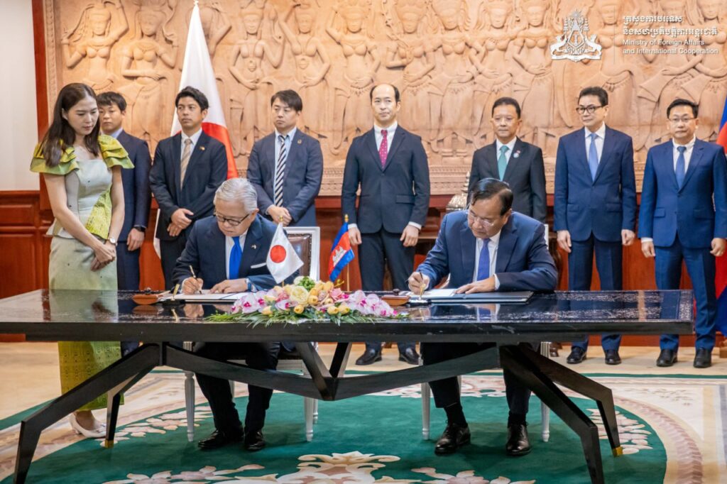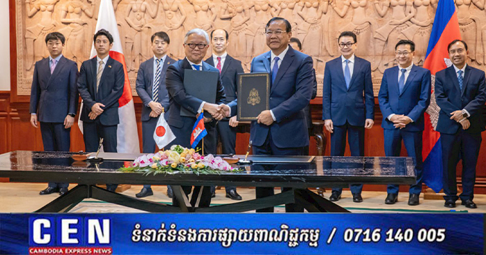 ភ្នំពេញ ៖ នៅថ្ងៃទី១៩ ខែមីនា ឆ្នាំ២០២៦ ឯកឧត្តមឧបនាយករដ្ឋមន្ត្រី ប្រាក់ សុខុន រដ្ឋមន្ត្រីការបរទេស និង សហប្រតិបត្តិការអន្តរជាតិនៃព្រះរាជាណាចក្រកម្ពុជា និងឯកឧត្តម UENO Atsushi ឯកអគ្គរាជទូតវិសាមញ្ញ និងពេញសមត្ថភាពជប៉ុនប្រចាំកម្ពុជា បានចុះហត្ថលេខាលើលិខិតប្តូរសារស្តីពីការកែសម្រួលនៃហិរញ្ញប្បទាន ឥតសំណងរបស់ជប៉ុនសម្រាប់គម្រោង «ការពង្រីកប្រព័ន្ធផ្គត់ផ្គង់ទឹកស្អាតក្នុងក្រុងតាខ្មៅ»។