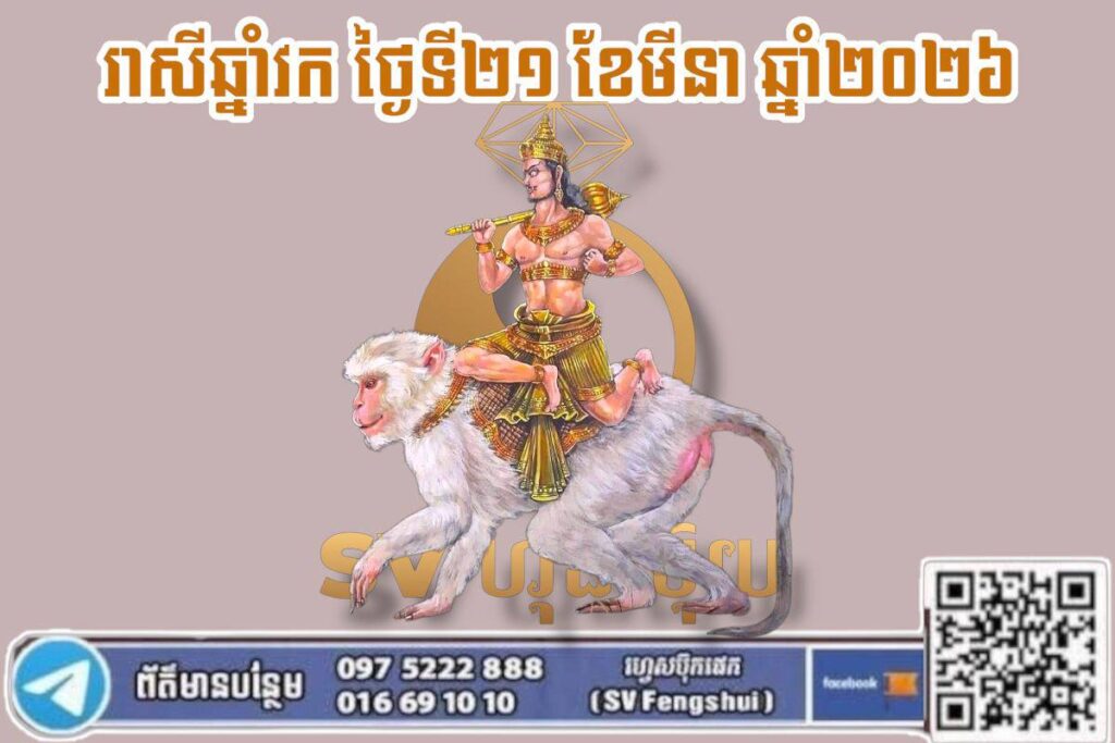 ថ្ងៃនេះរាសីអ្នកកើតឆ្នាំវកស្ថិតក្នុងកម្រិតមធ្យម។ លោកអ្នកហាក់មានអារម្មណ៍ថា ចង់ធ្វើអ្វីៗឱ្យបានលឿន ប៉ុន្តែជួបនឹងរឿងរំខានចិត្តបន្តិចបន្តួចពីអ្នកជុំវិញខ្លួន។ ការប្រើប្រាស់ប្រាជ្ញា និងភាពវៃឆ្លាតដែលមានពីកំណើតមកដោះស្រាយបញ្ហា នឹងជួយឱ្យអ្នកឆ្លងផុតឧបសគ្គនៅថ្ងៃនេះបាន។